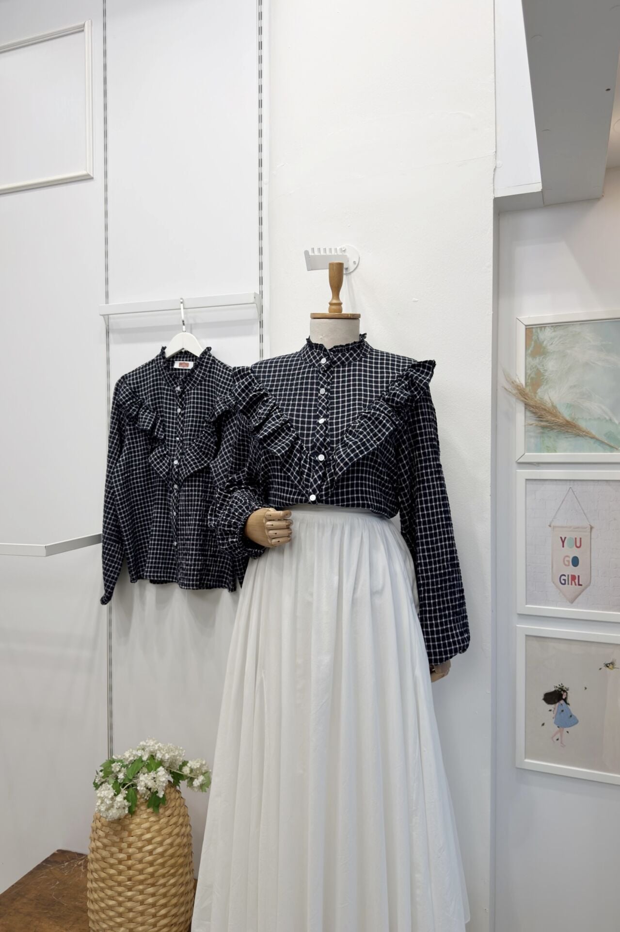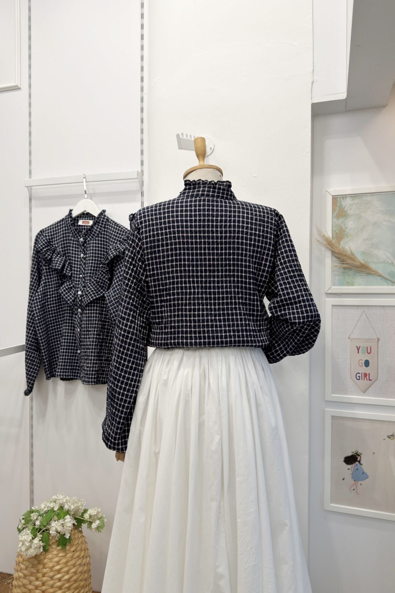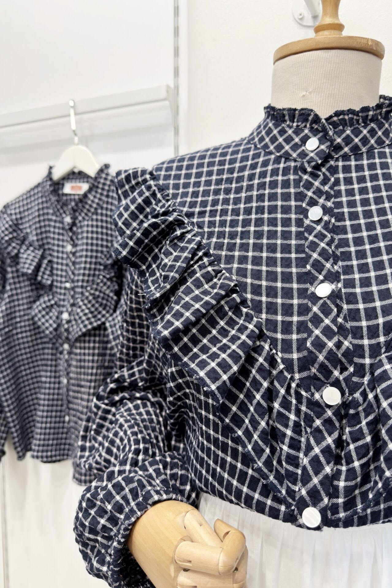 Lacivert Ekosel Desenli Volanlı Archie Gömlek