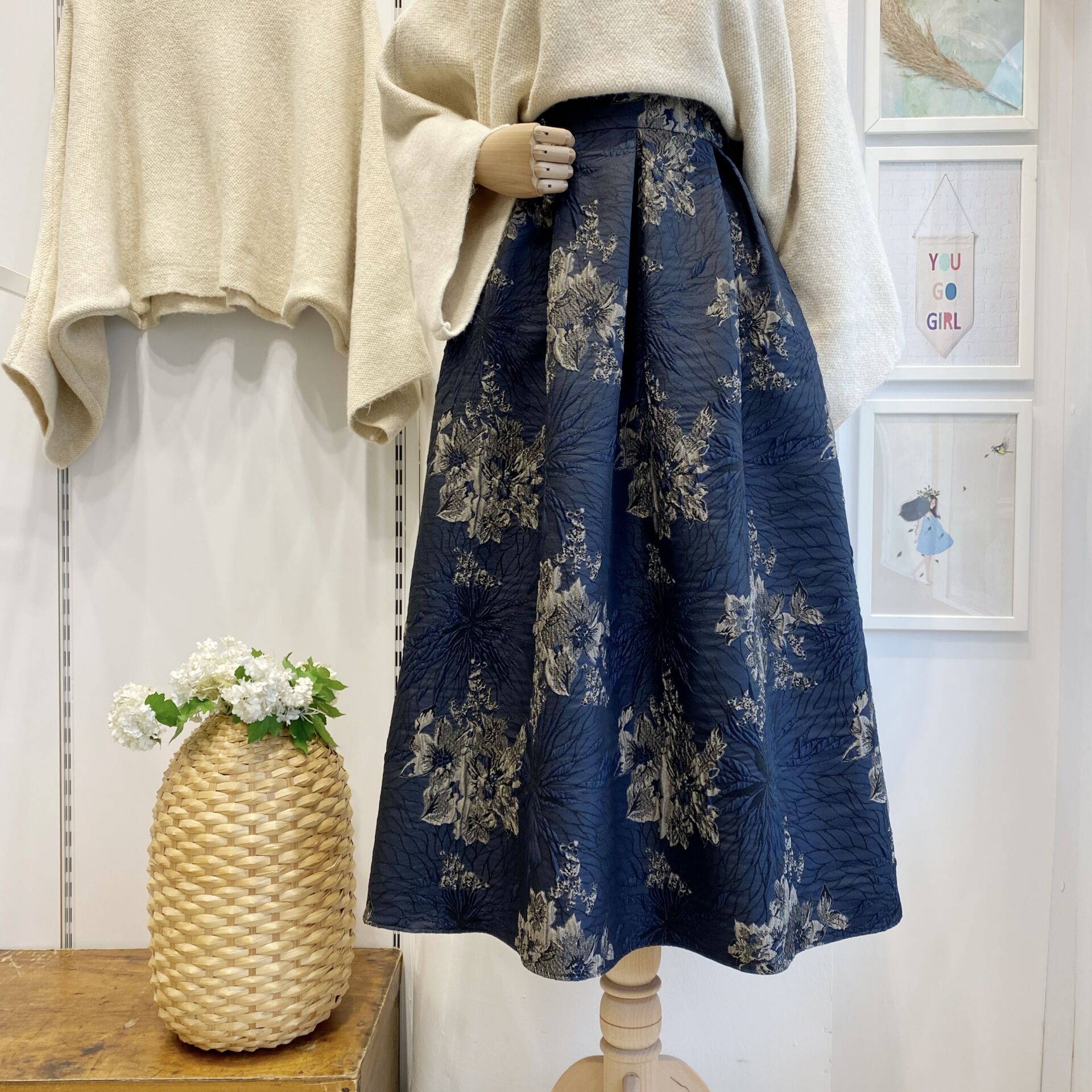 Lacivert Etnik Desenli Bohem Kapitone Etek E5G1S
