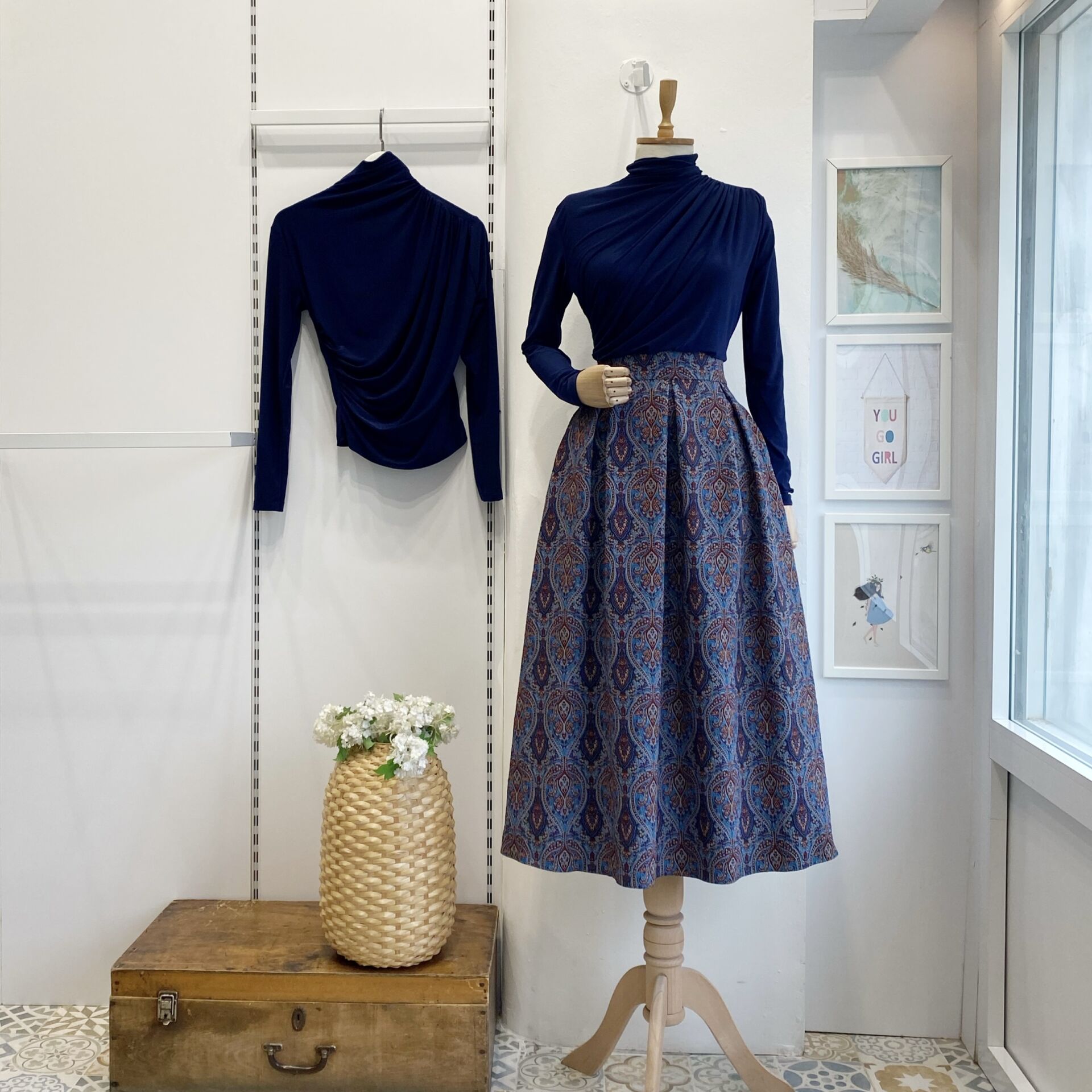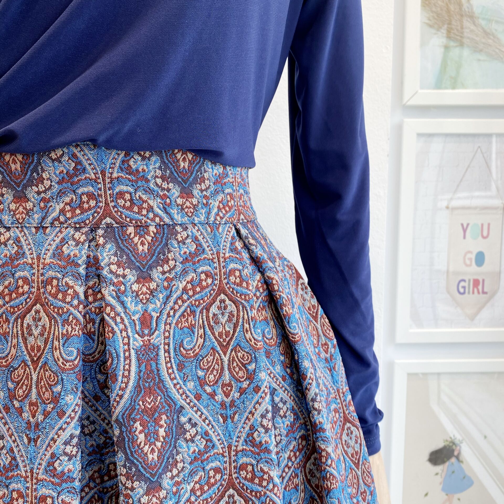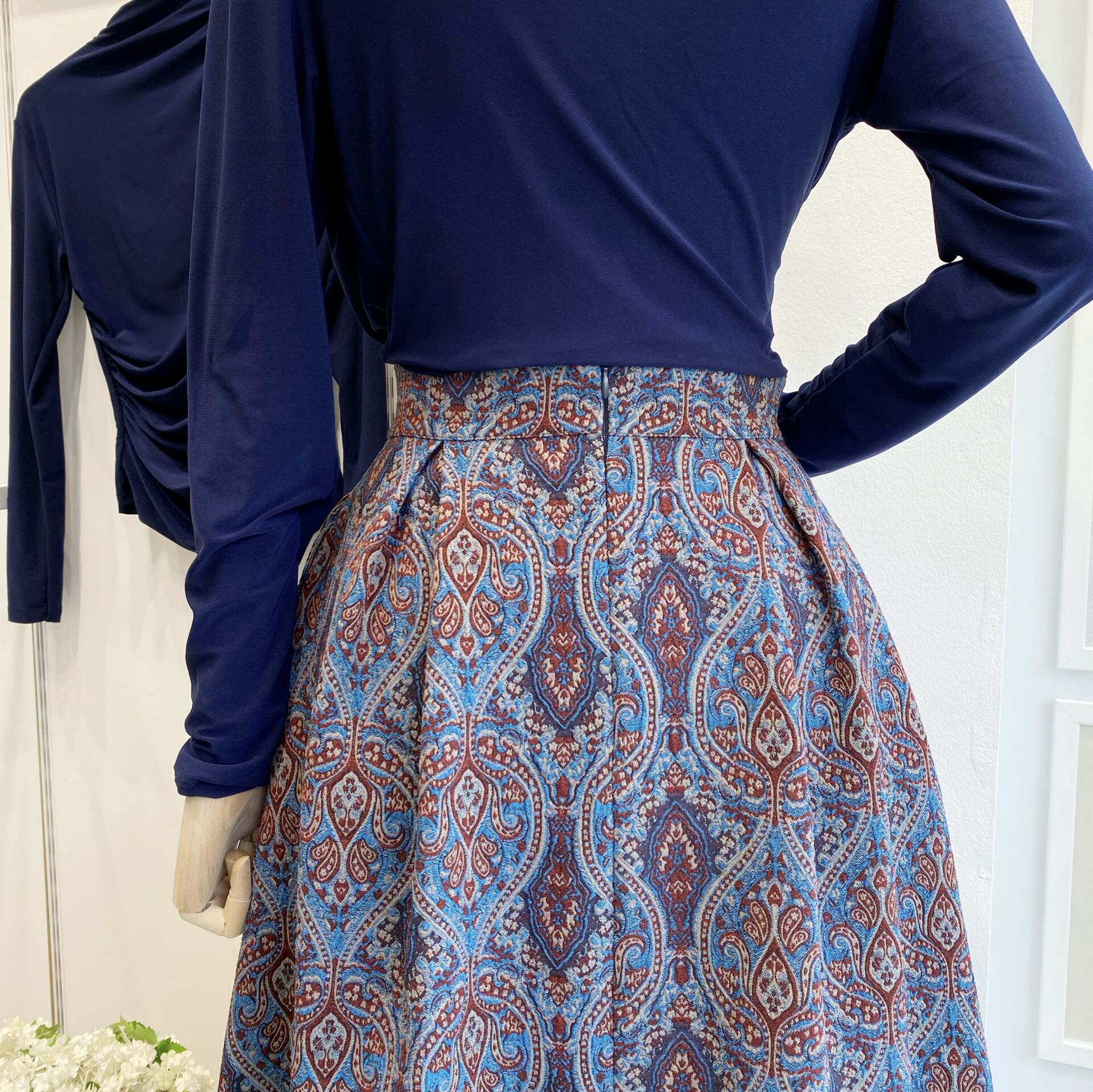 Lacivert Etnik Desenli Pileli Etek A7D9F