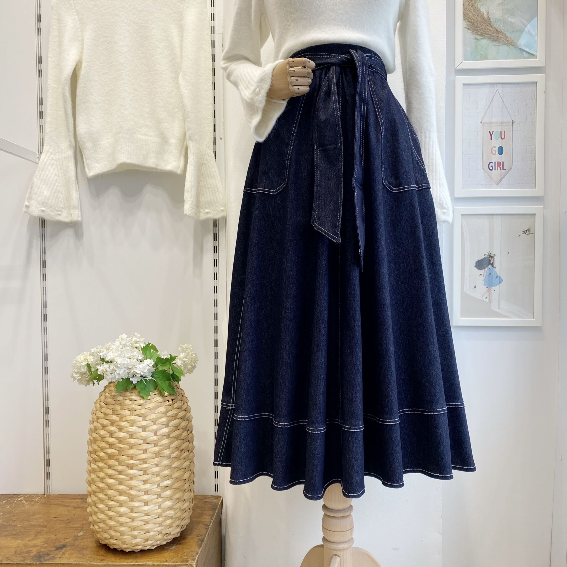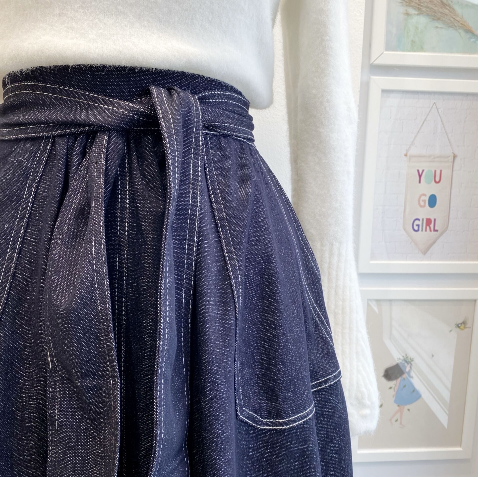 Lacivert Kuşak Detaylı Kot Etek
