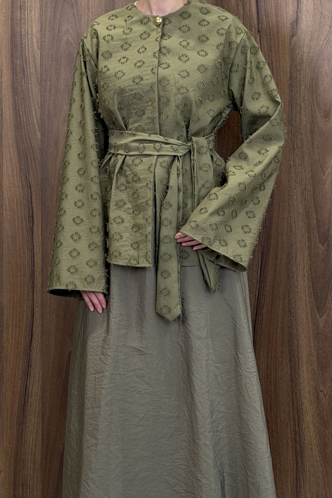Haki Yeşili Kuşak Detaylı Layers Takım