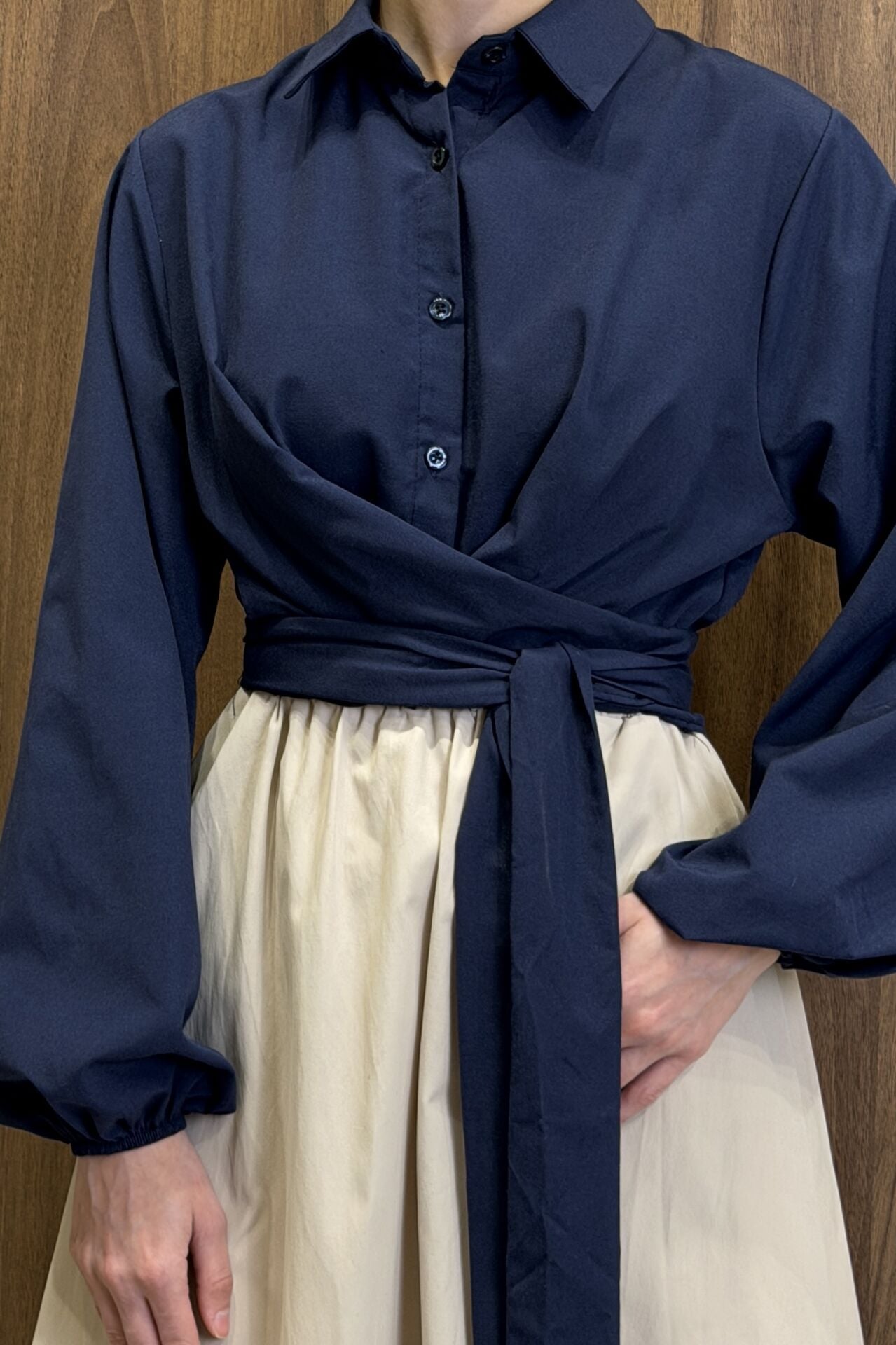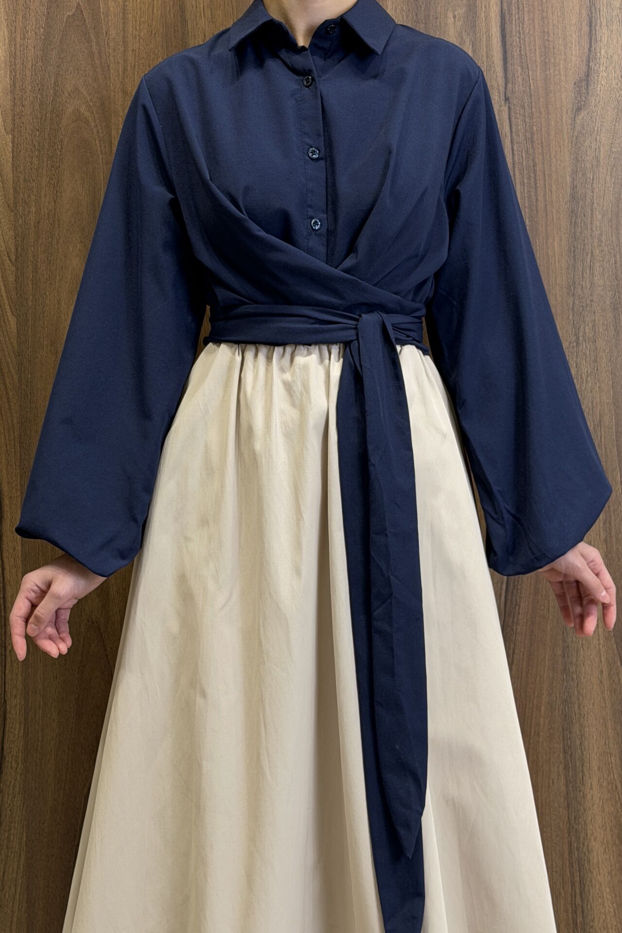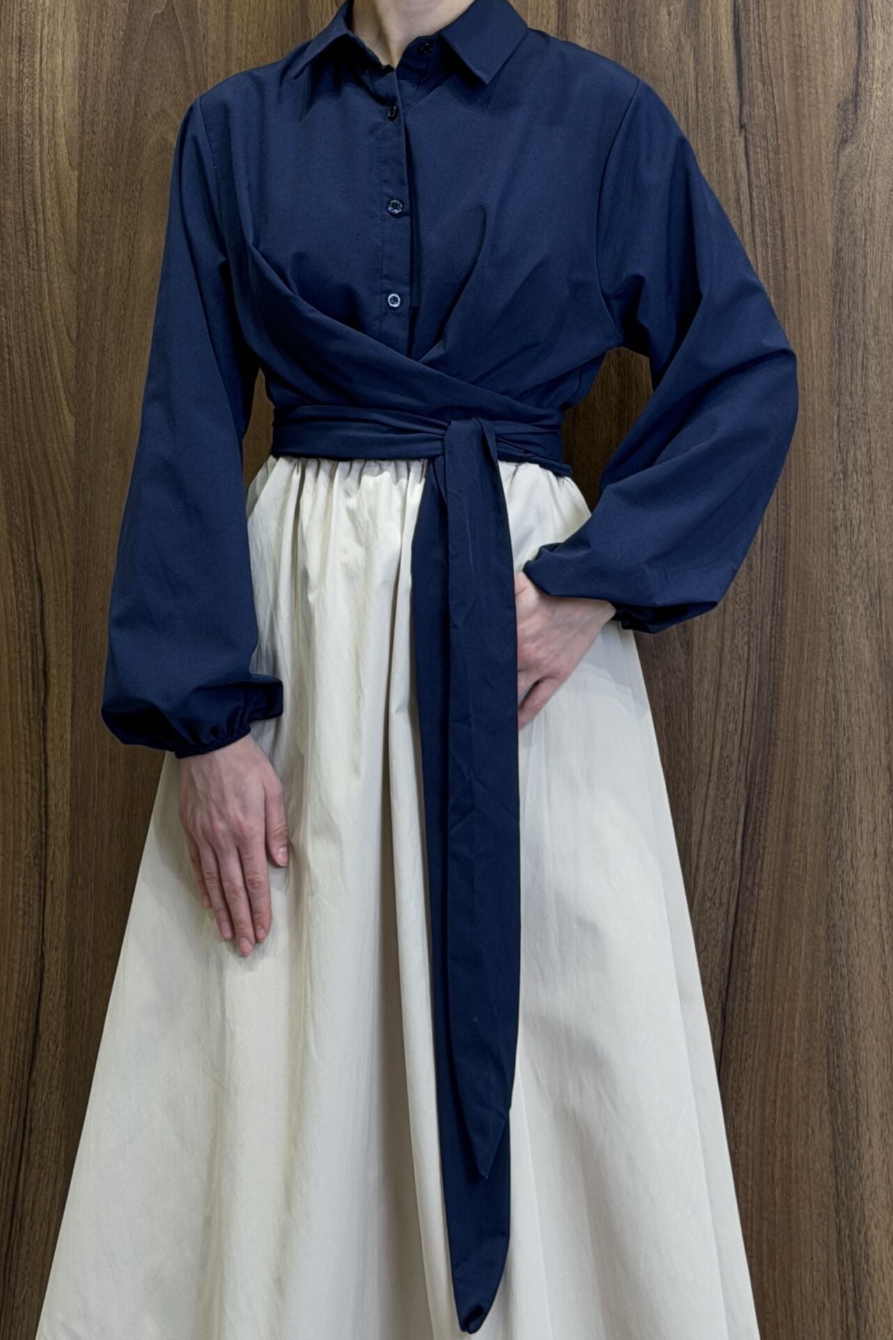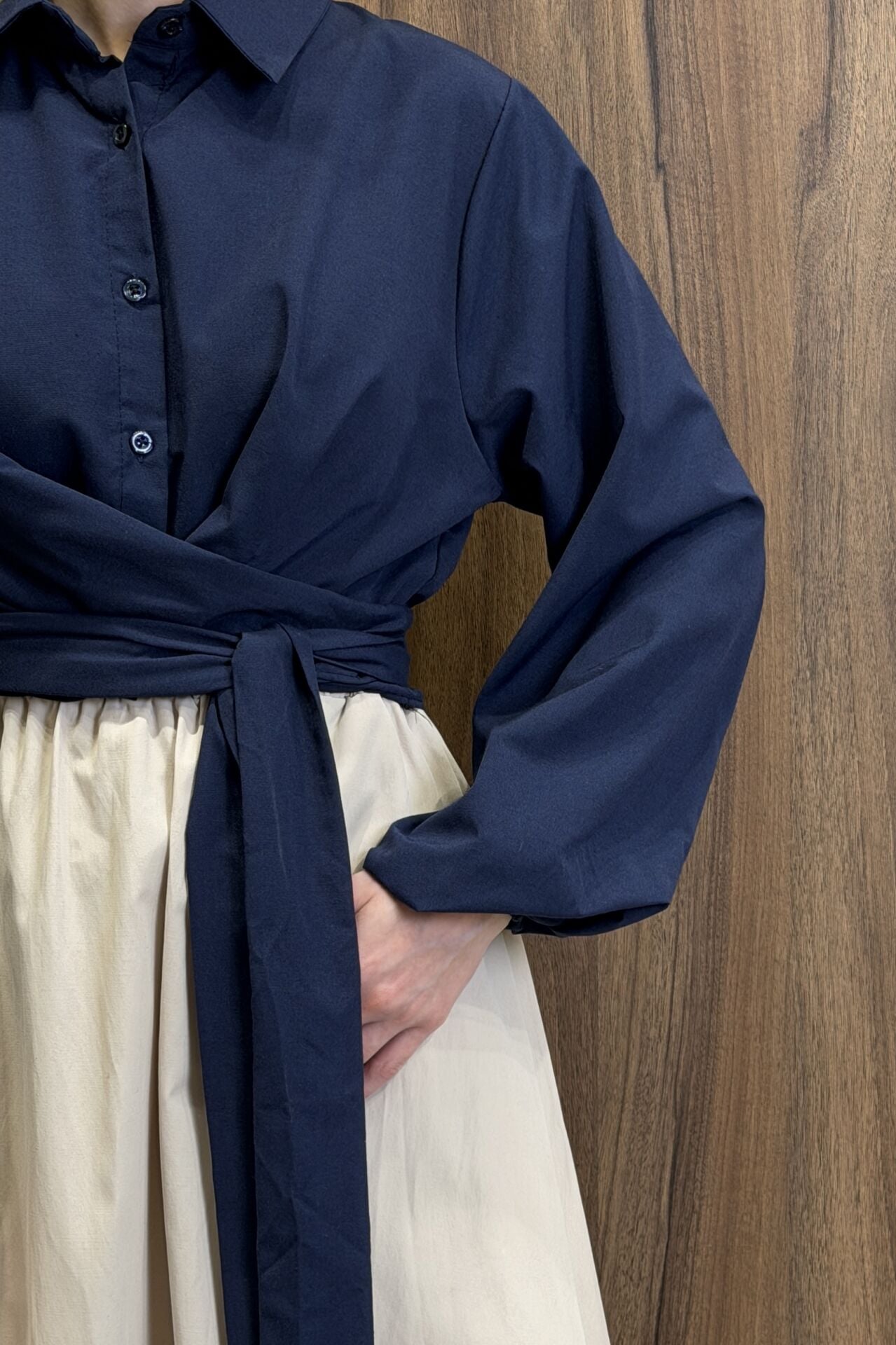 Lacivert Poplin Kumaş Kuşaklı Gömlek