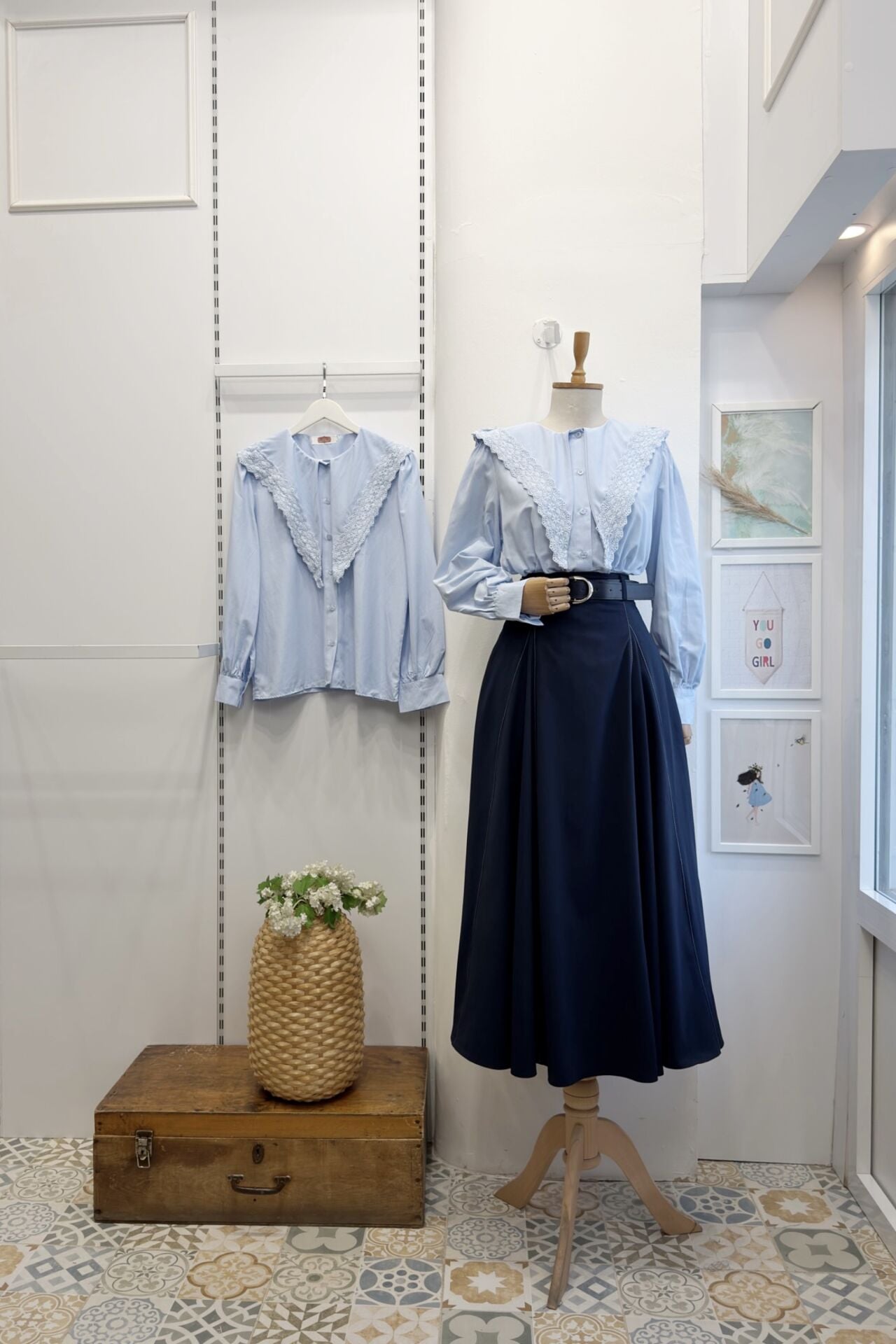 Mavi Fisto Detaylı Şal Yaka Gömlek