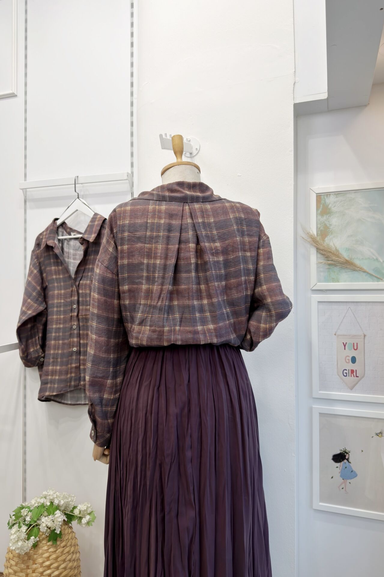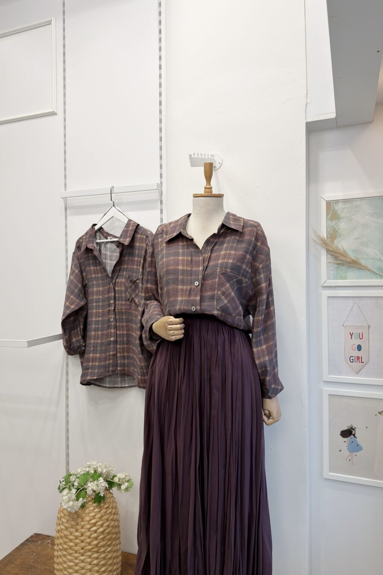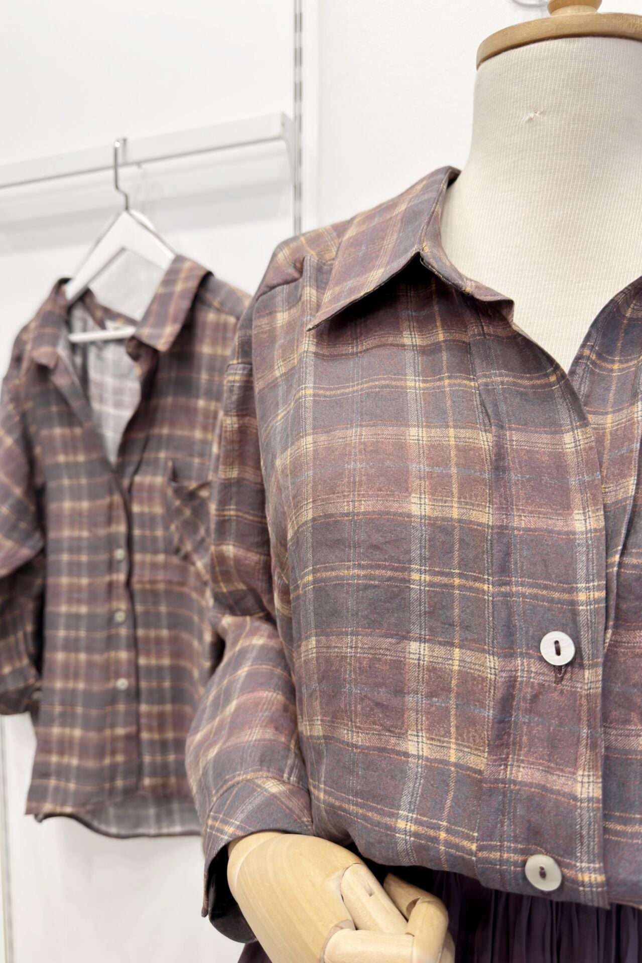 Mürdüm Ekose Desenli Oversize Gömlek