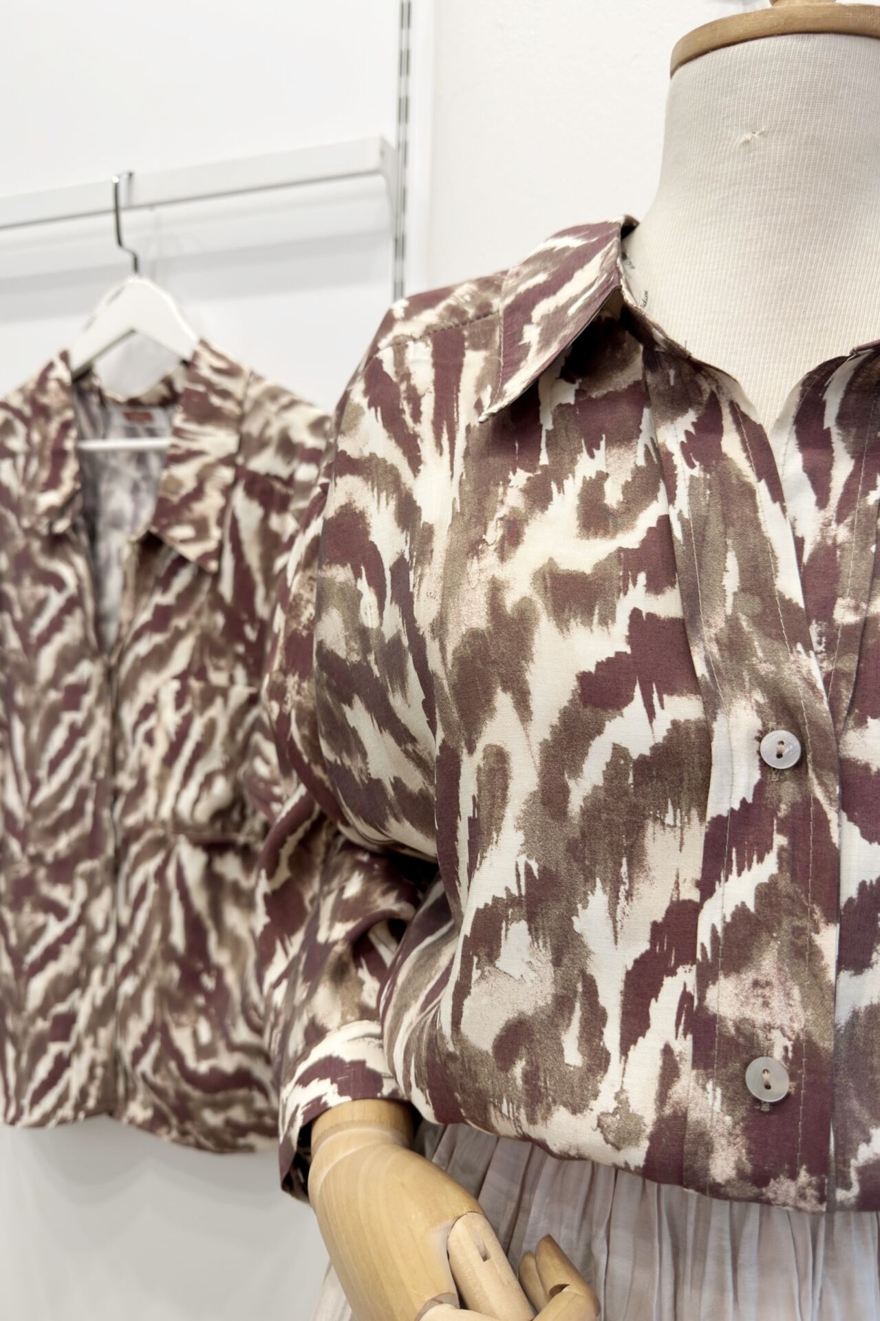 Mürdüm Fırça Desenli Oversize Gömlek