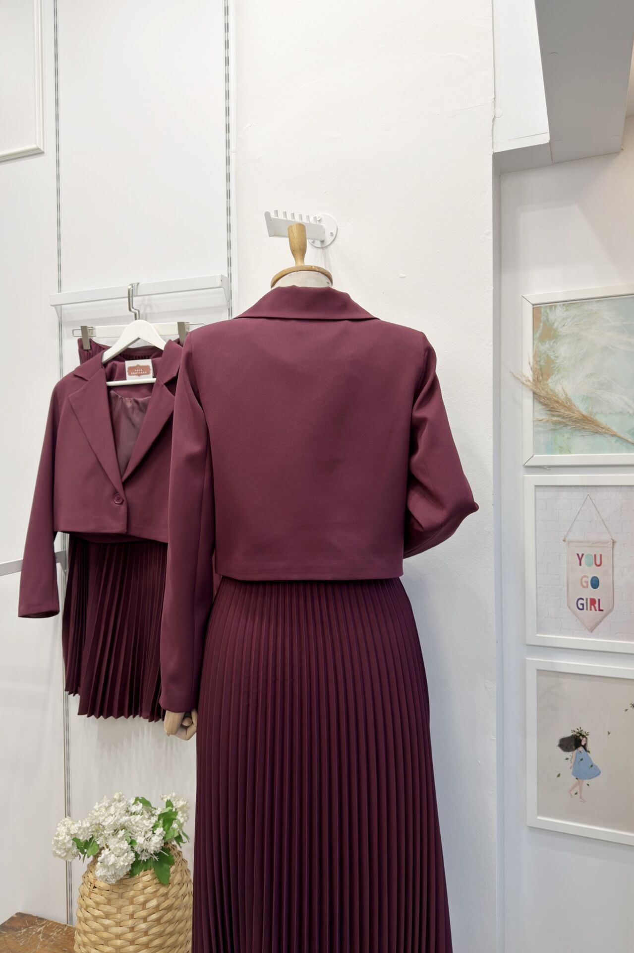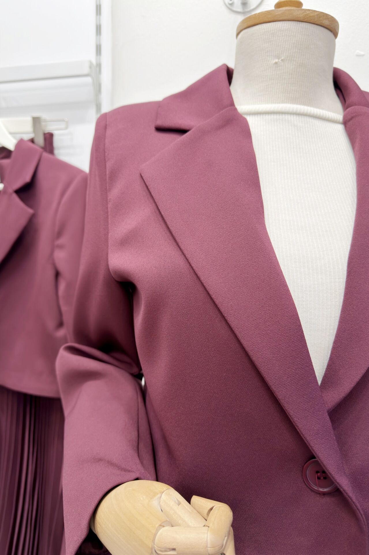 Mürdüm Tek Düğme Ceketli Eteği Piliseli Takım