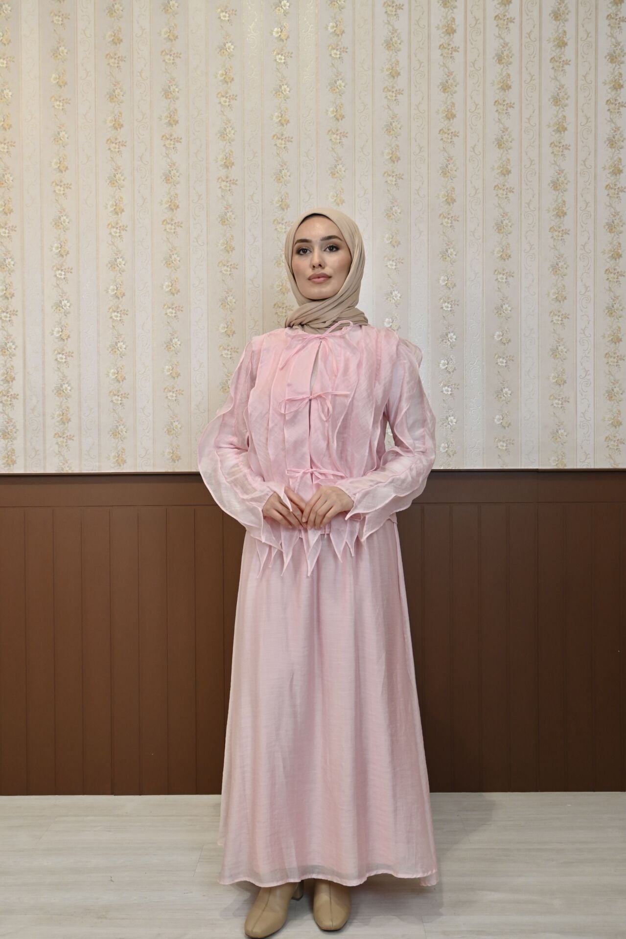 Pembe Celestia Şifon Etekli Takım