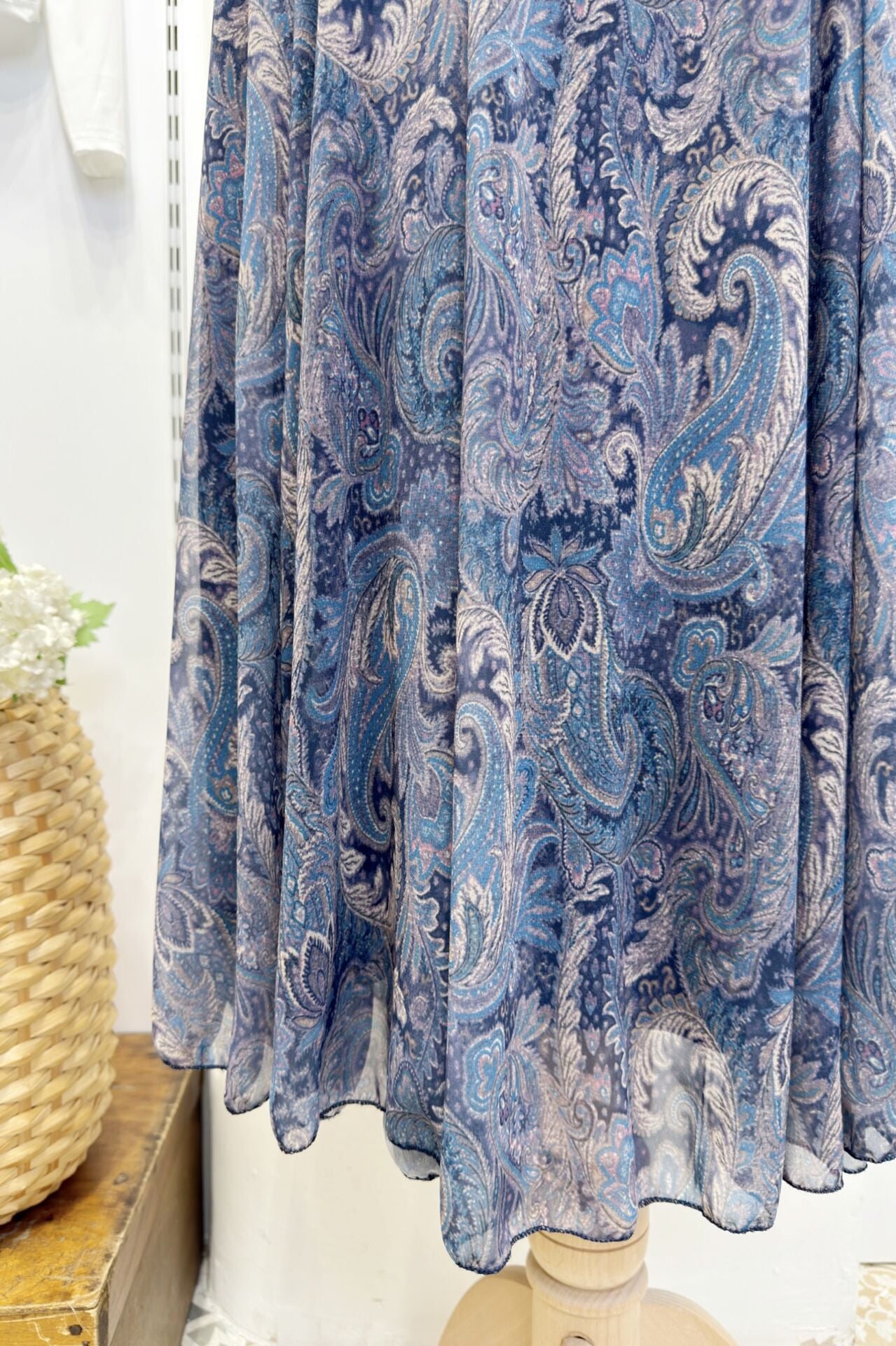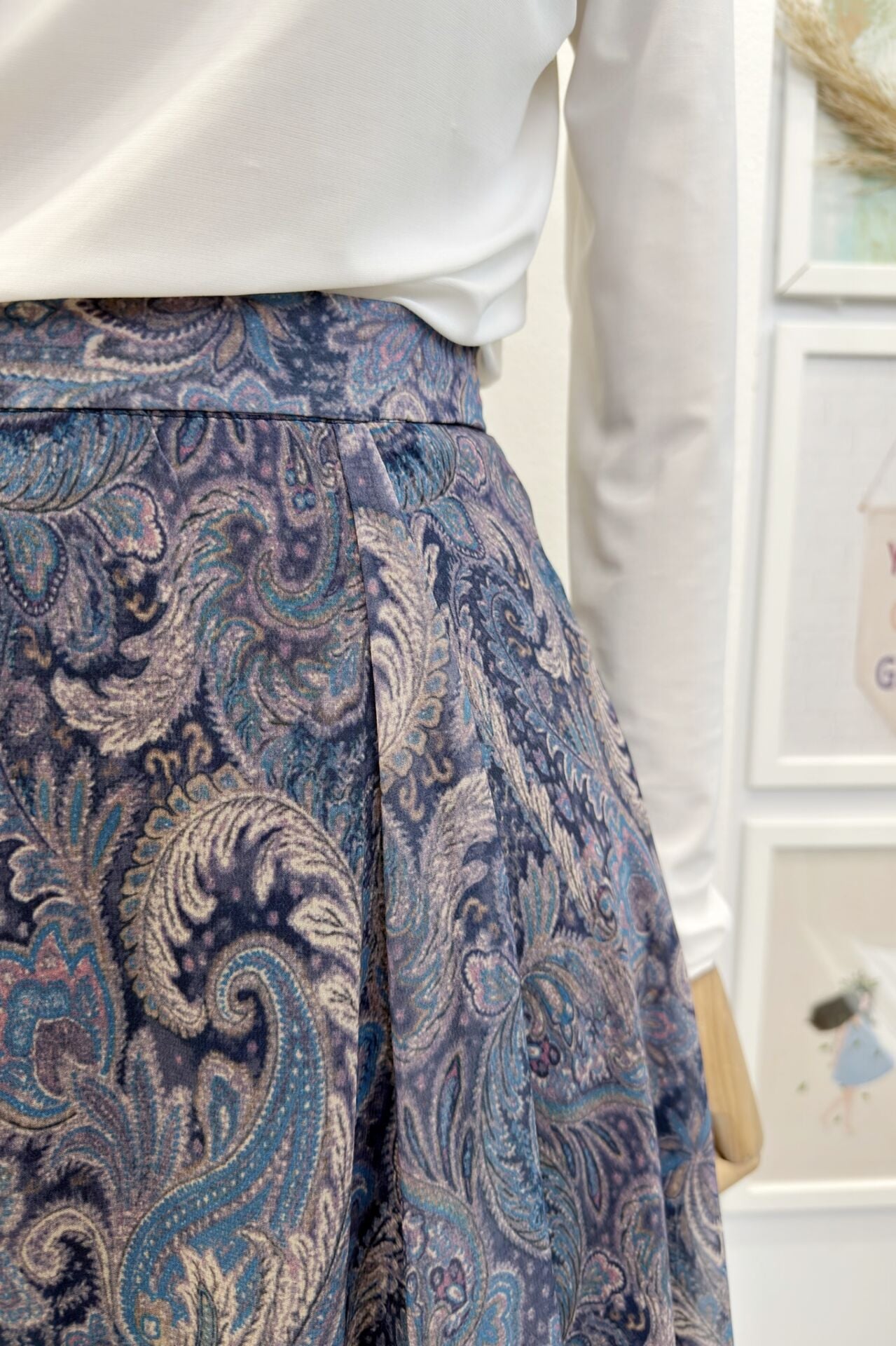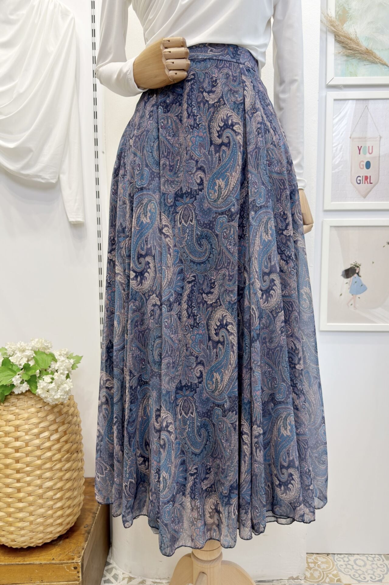Şal Desenli Açık Mavi Şifon Etek