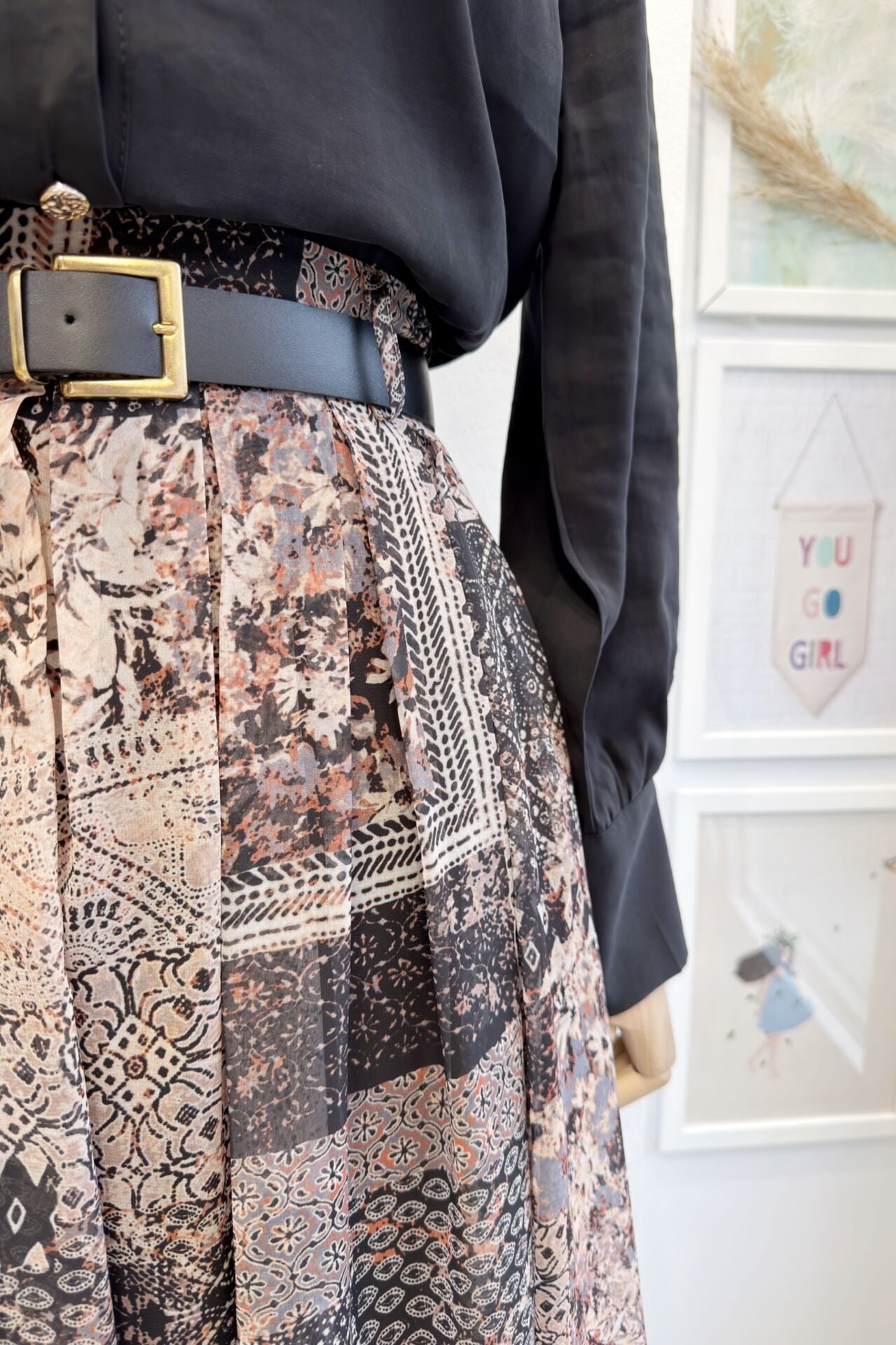 Siyah Desenli Şifon Etekli Chermine Takım