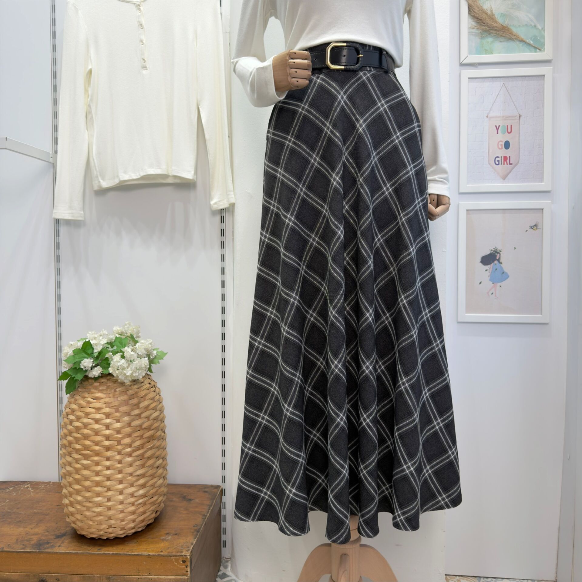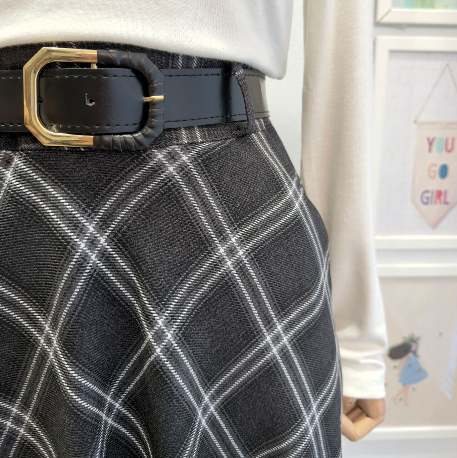 Siyah Kemer Detaylı Ekoseli Notes Etek