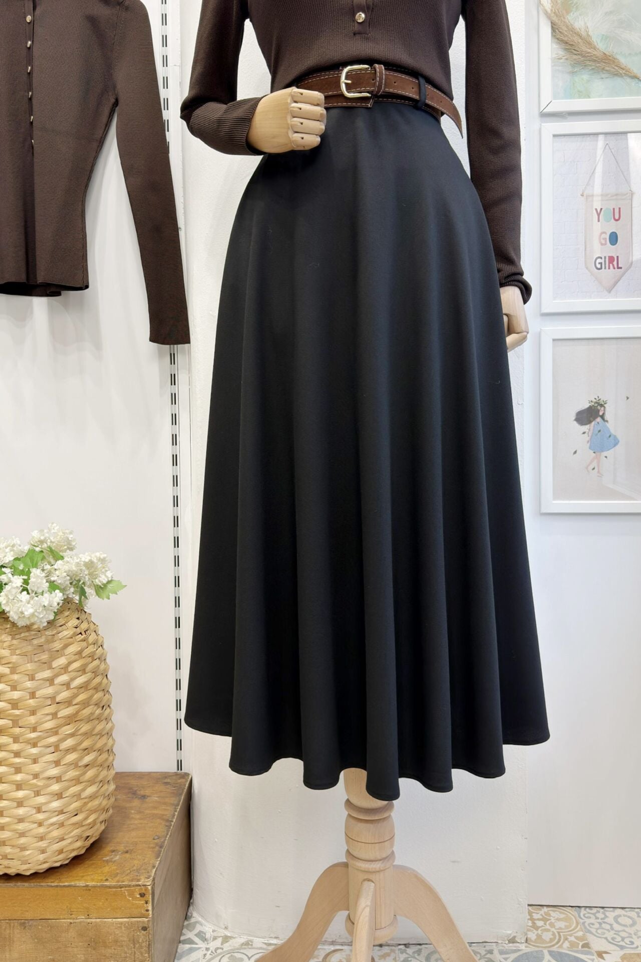 Siyah Kemer Detaylı Maestro Crep Etek