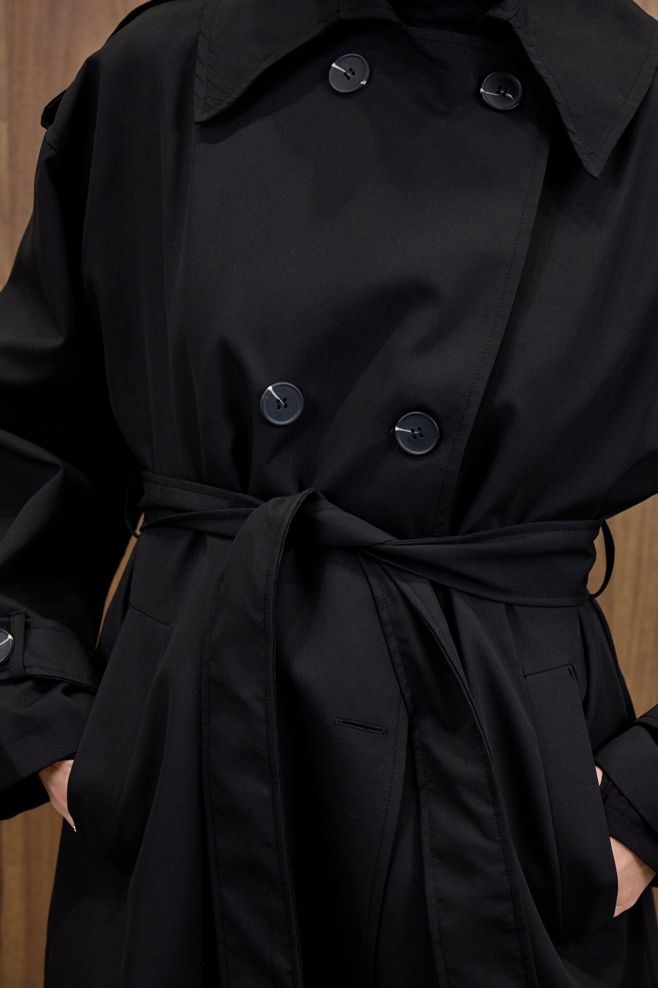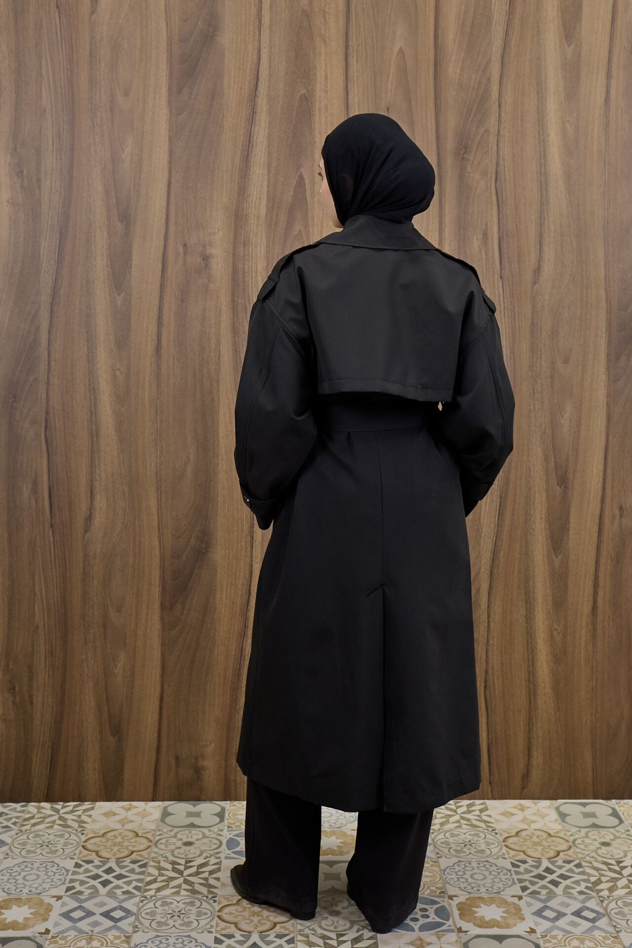 Siyah Kemer Detaylı Trençkot