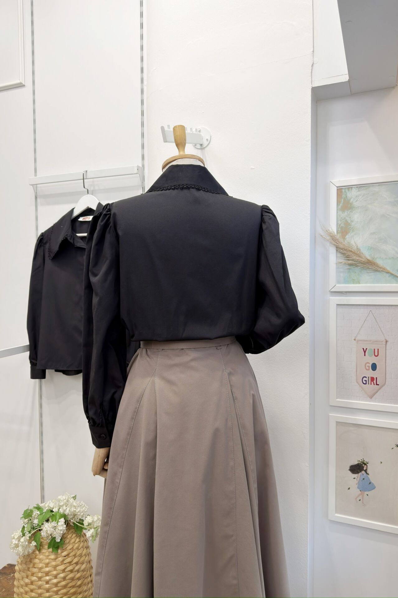 Siyah Sivri Yakalı Poplin Gömlek