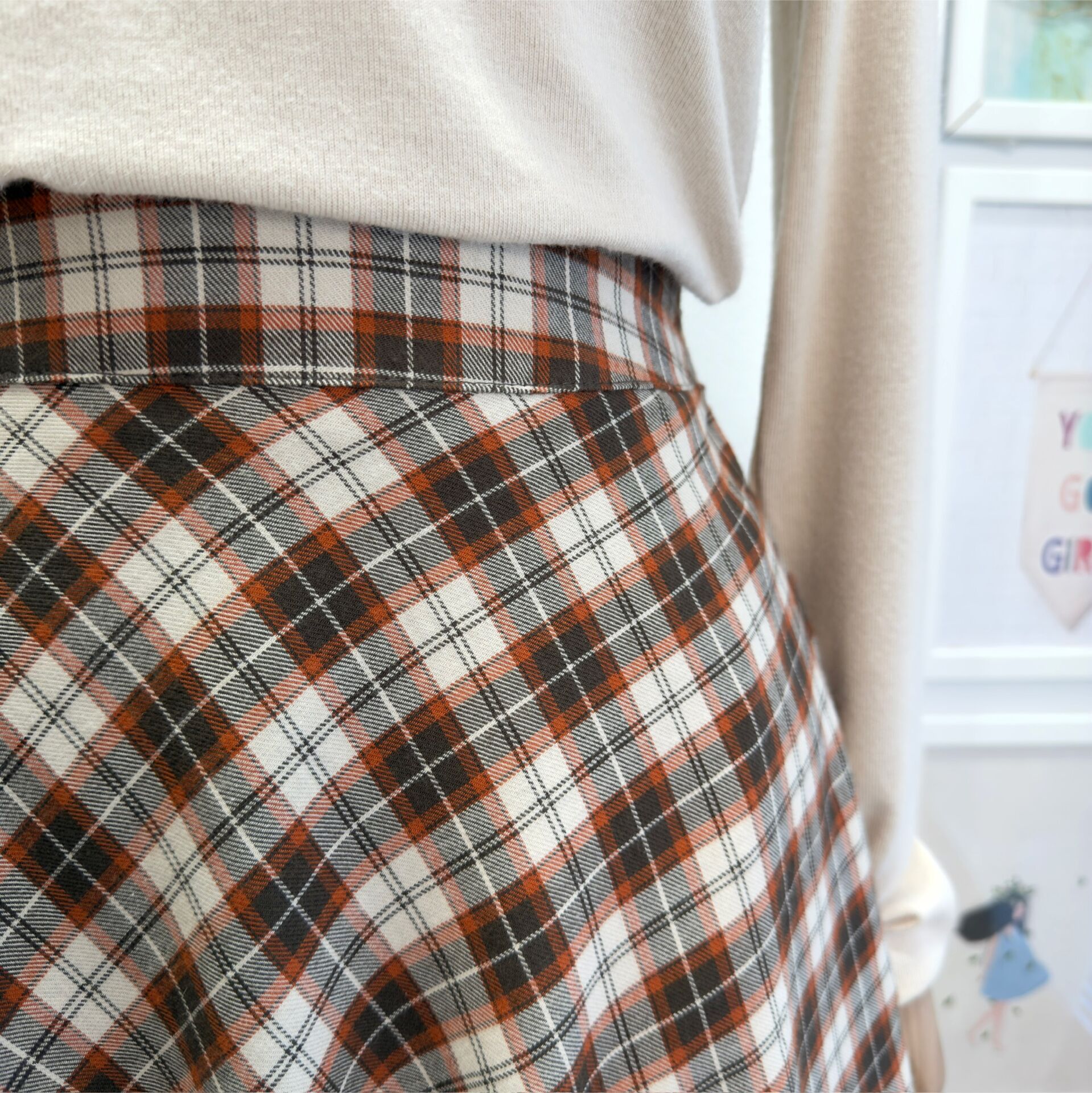 Turuncu Jesen Kloş Model Ekoseli Etek
