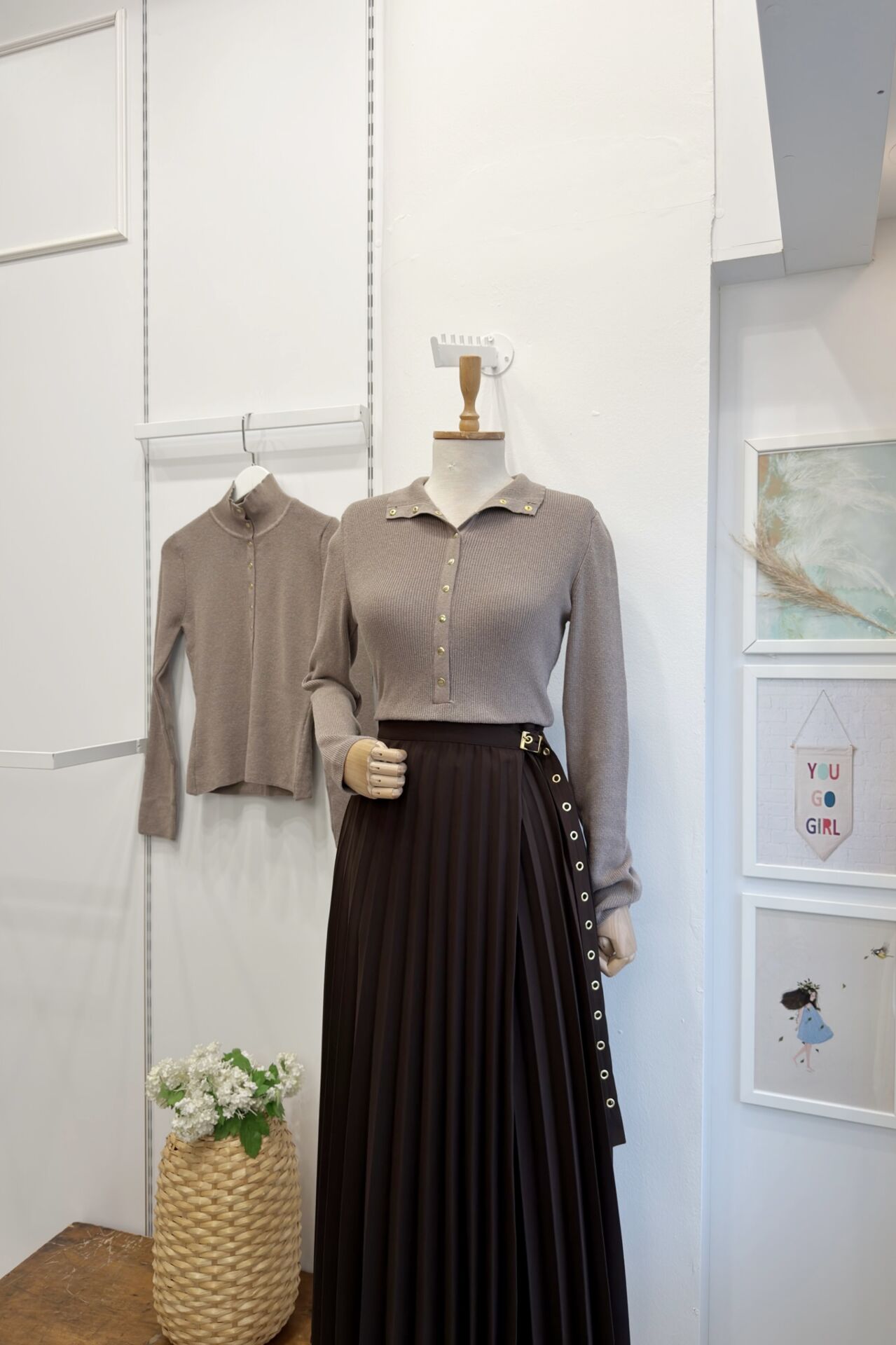 Vizon Dik Yaka Düğmeli Triko Bluz