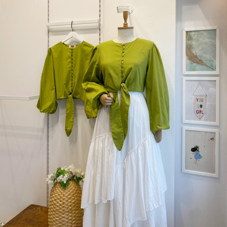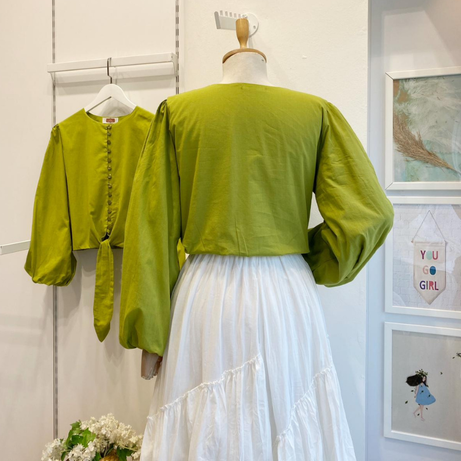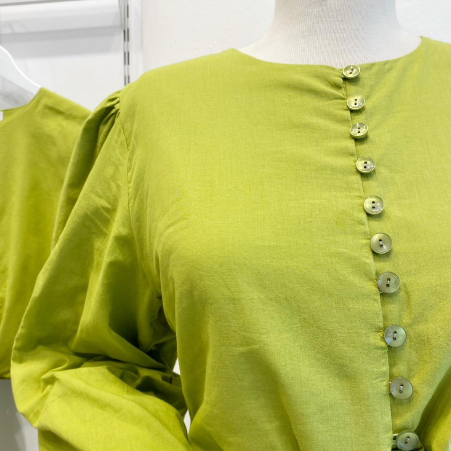 Yağ Yeşili Bağlamalı Balon Kol Gömlek