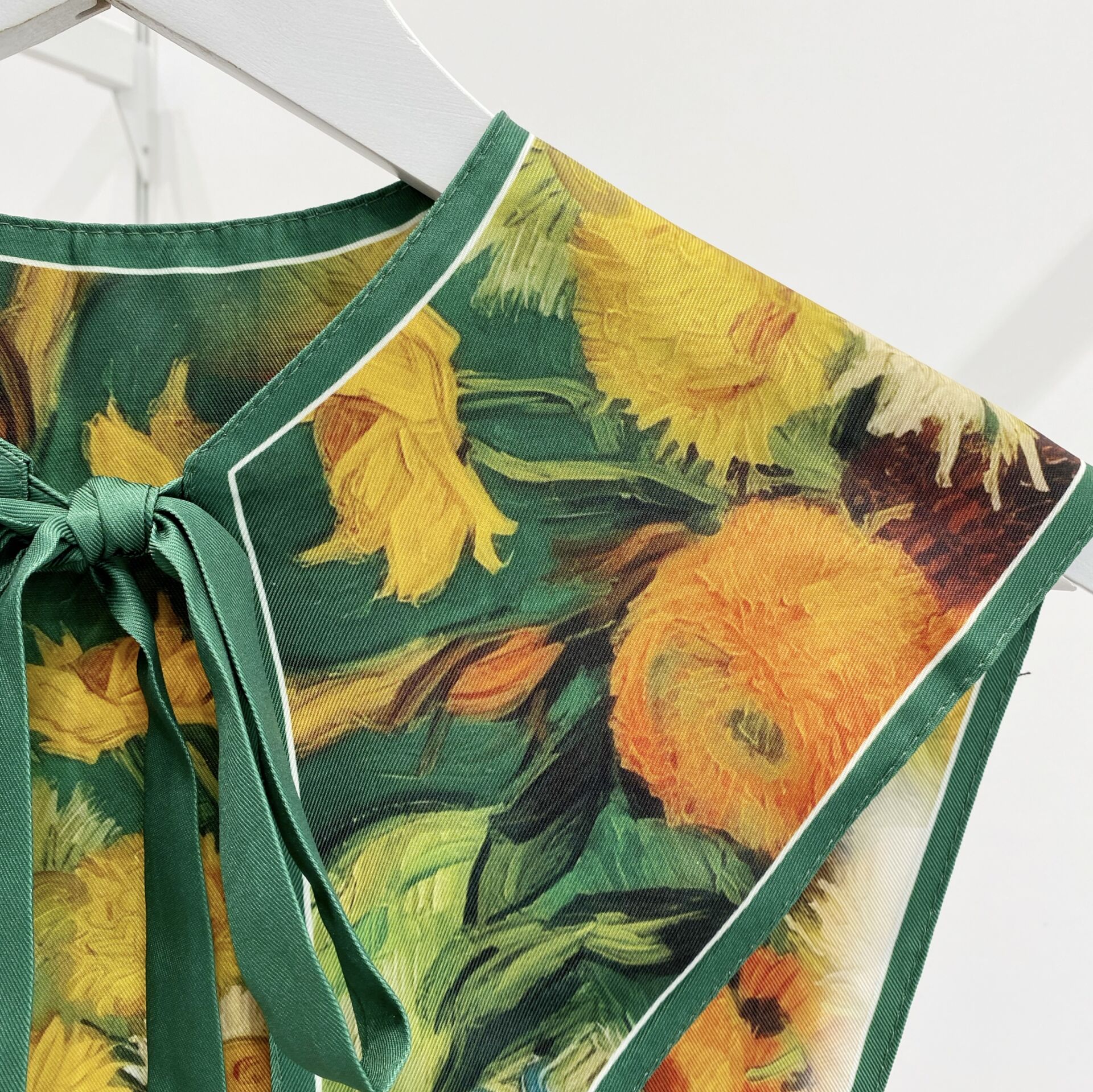 Yeşil Ayçiçeği Desenli Muse Yaka