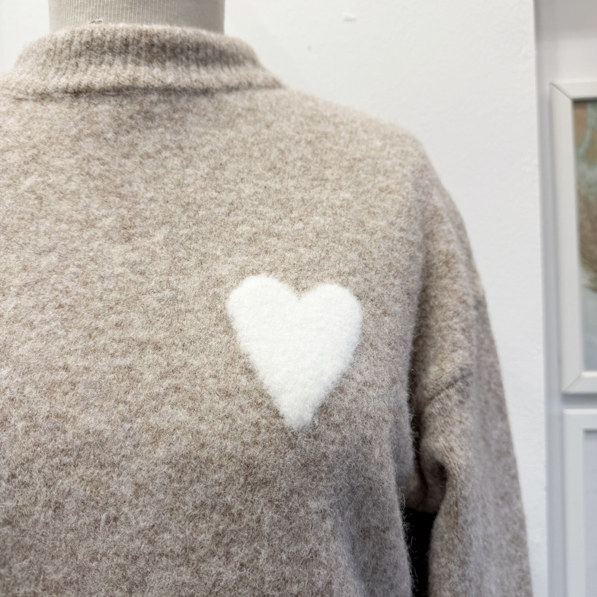 Yumuşak Dokulu Kalp Detaylı Vizon Triko Kazak