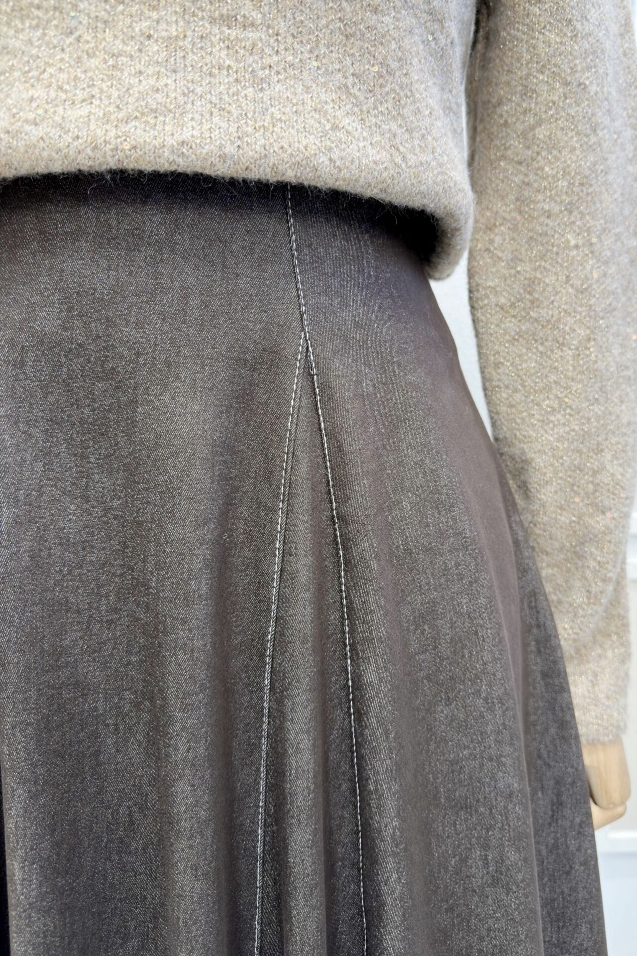 Acı Kahve Likralı Kot Kumaş Langley Etek