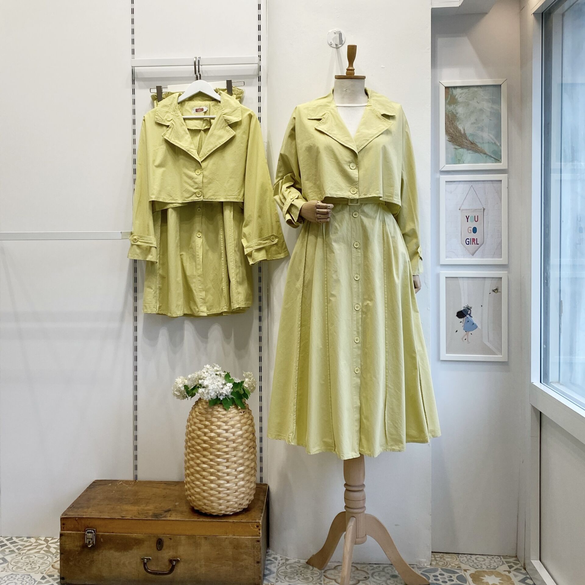 Açık Yeşil Kısa Trenç Ceketli Gabardin Takım