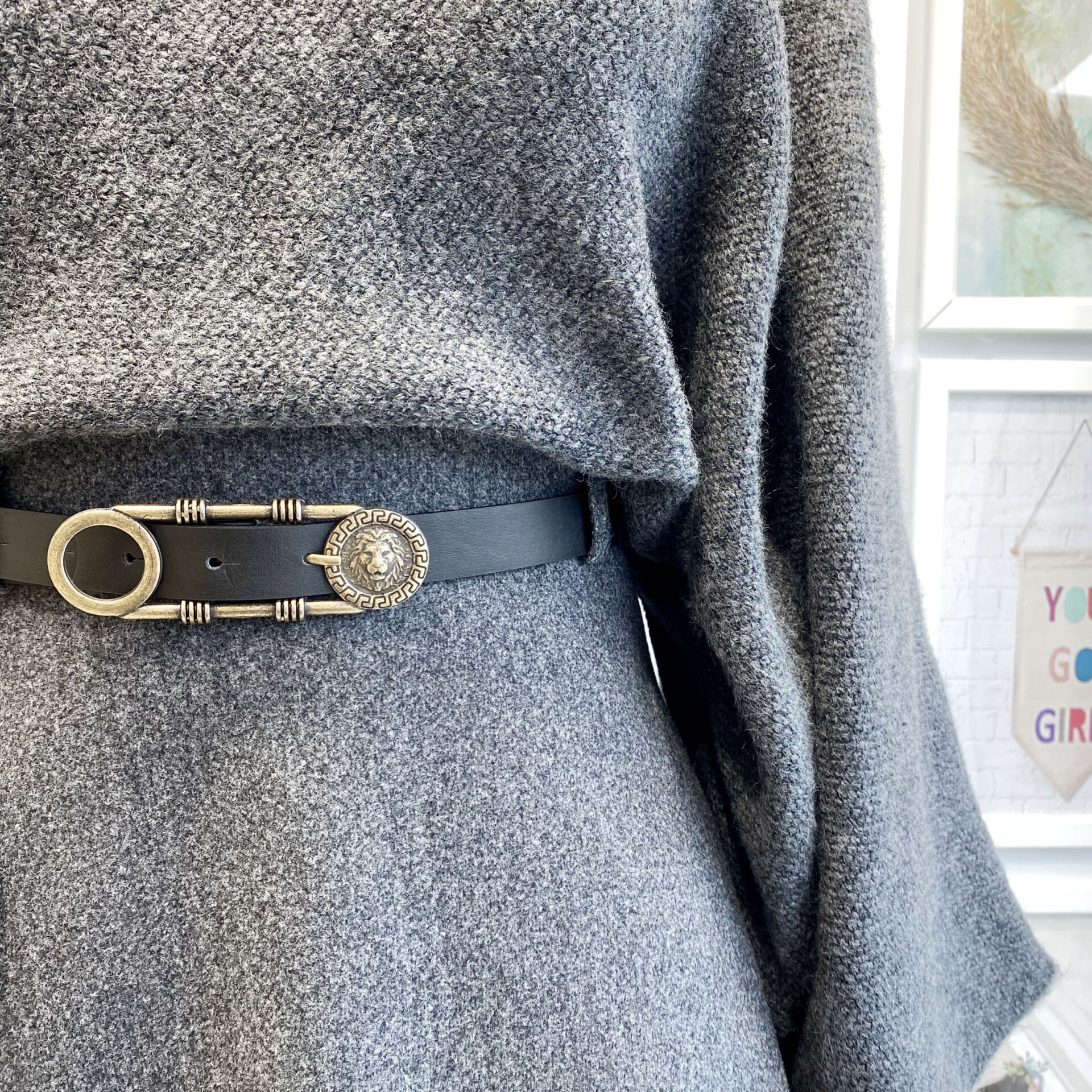 Antrasit Kemerli Kaşe Kloş Etek