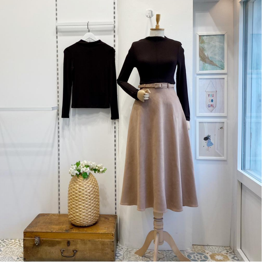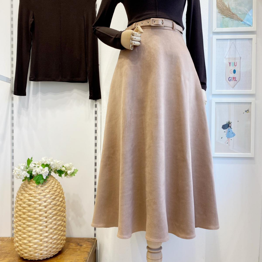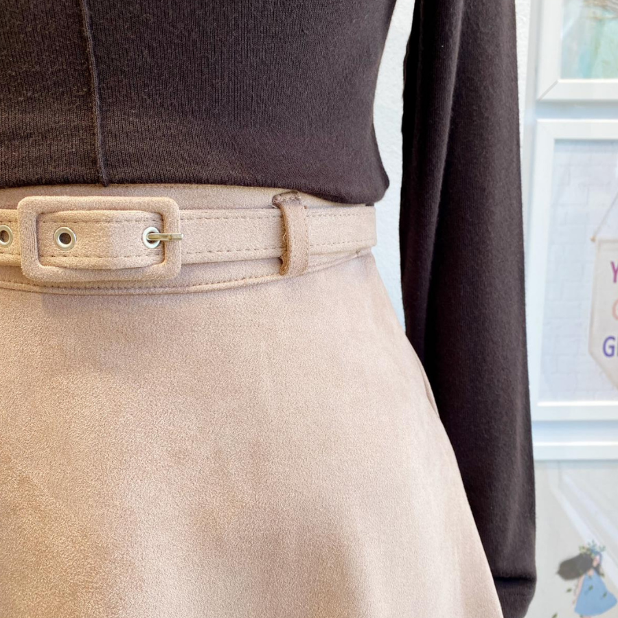 Bej Kemerli Süet Etek
