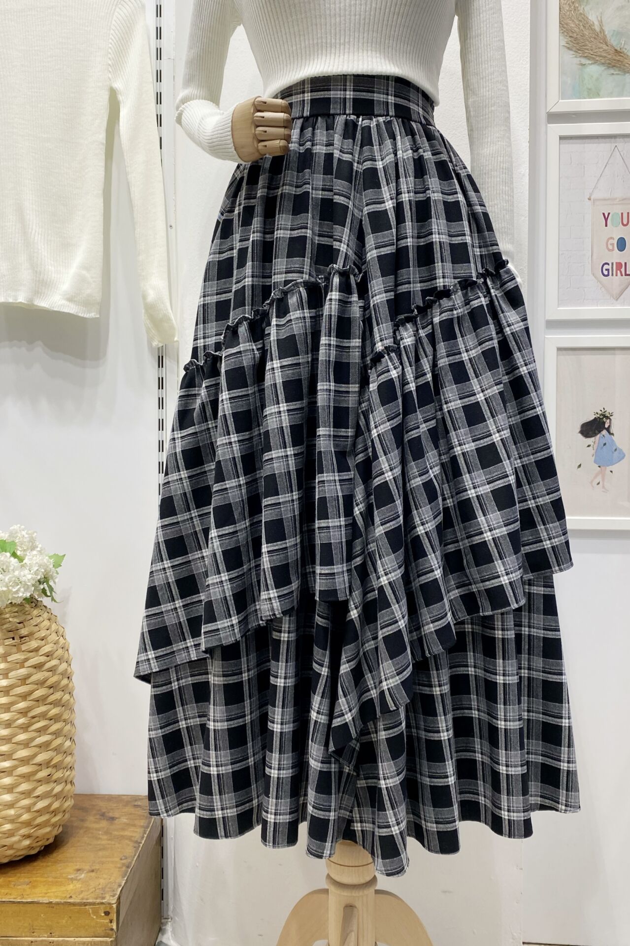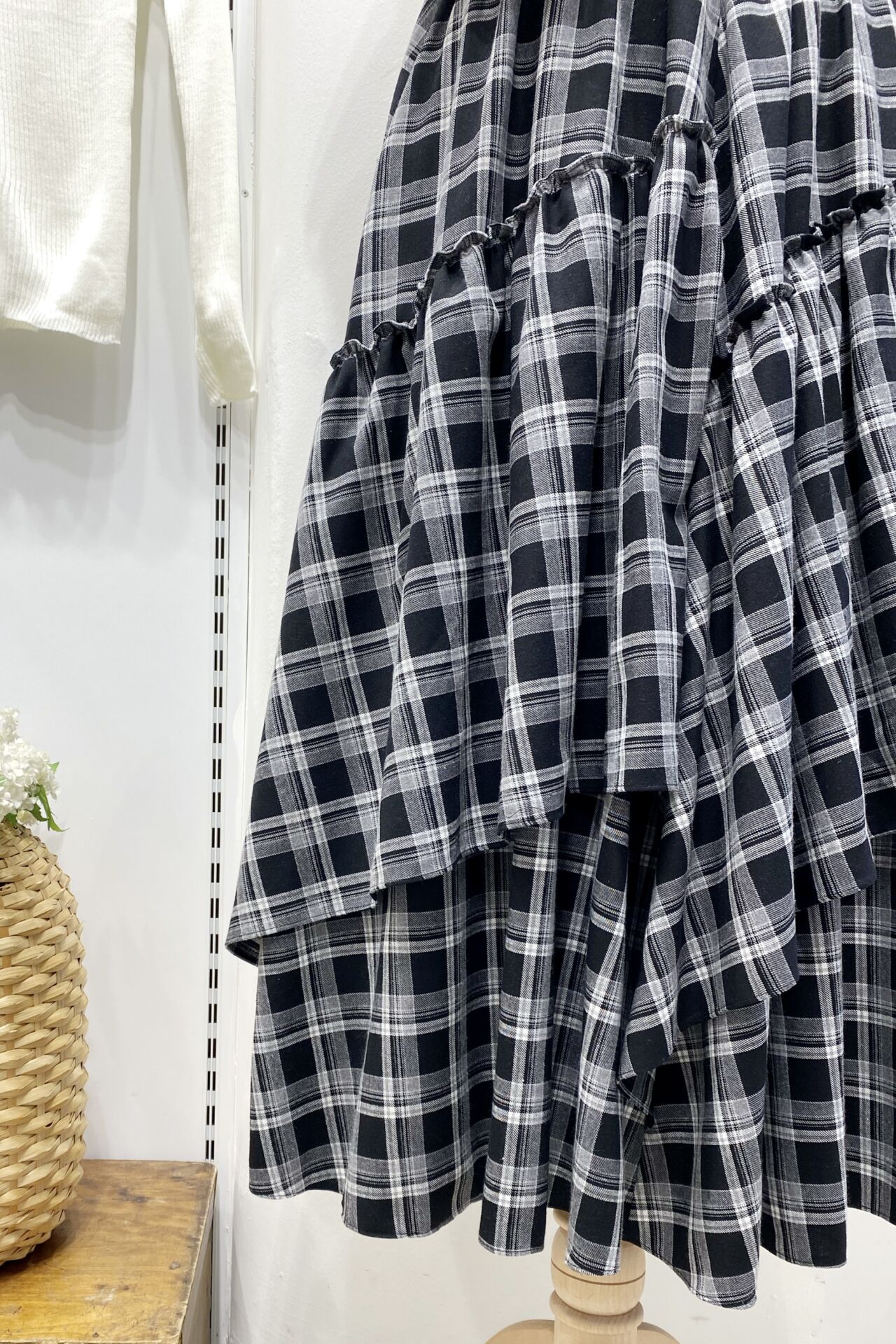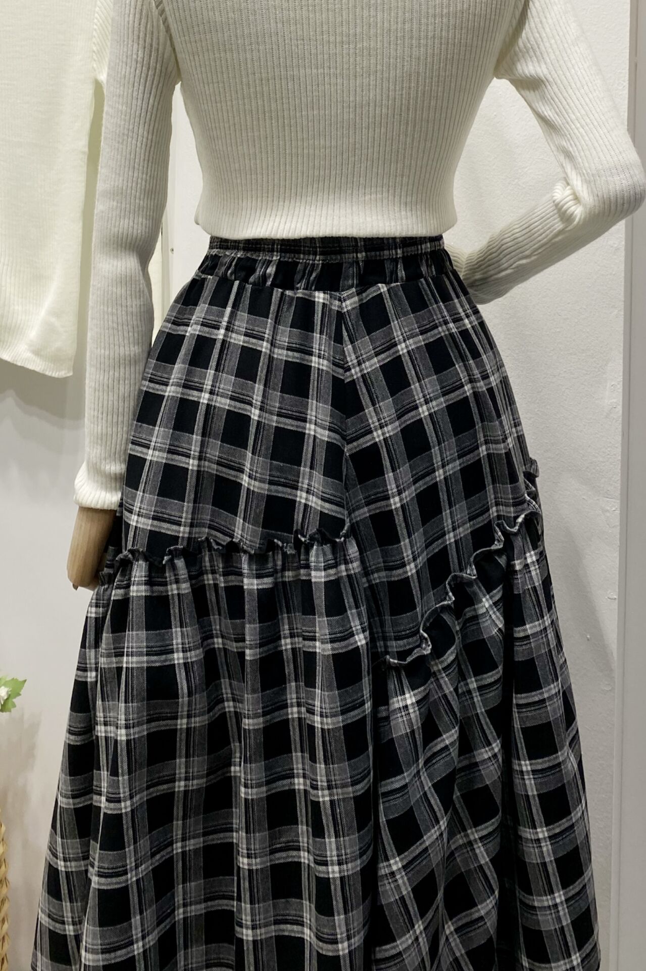 Beli Fermuarlı Ekose Desenli Siyah Ajouter Etek