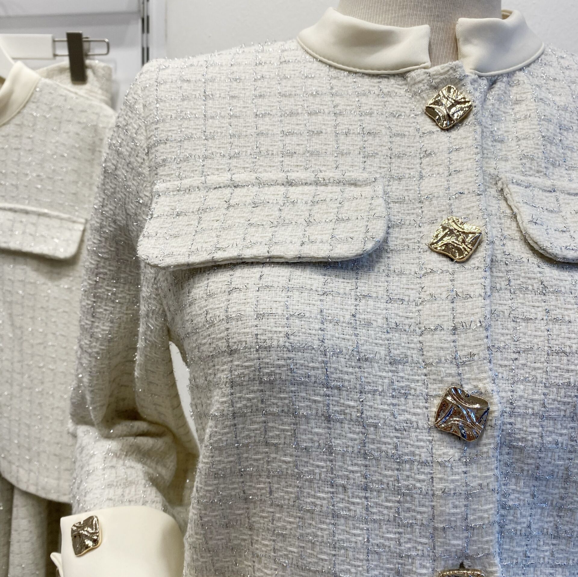 Beyaz Manşet Kol Detaylı Tüvit Takım