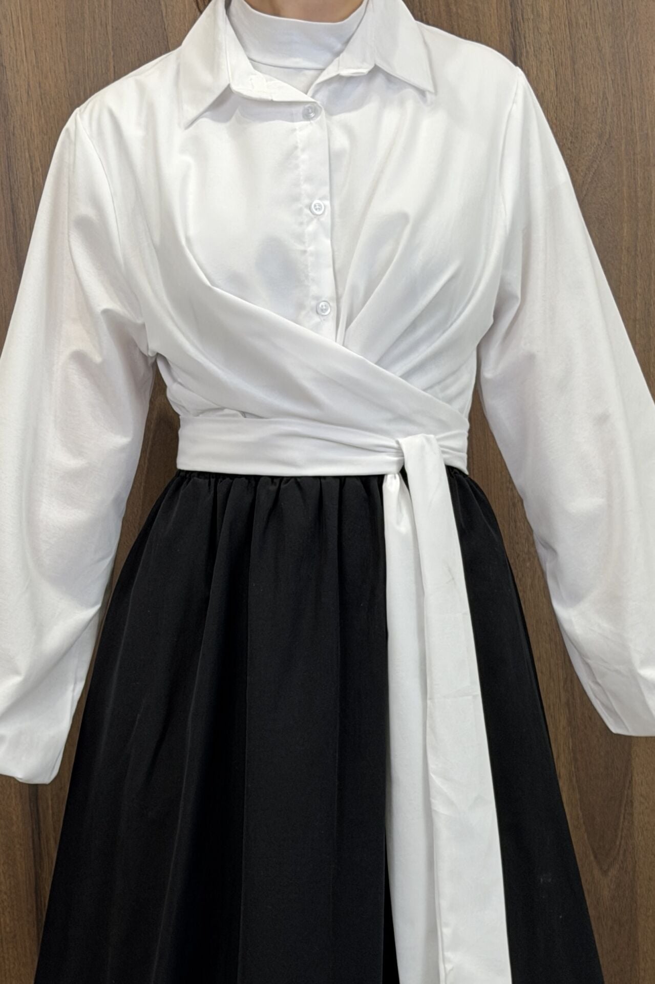 Beyaz Poplin Kumaş Kuşaklı Gömlek