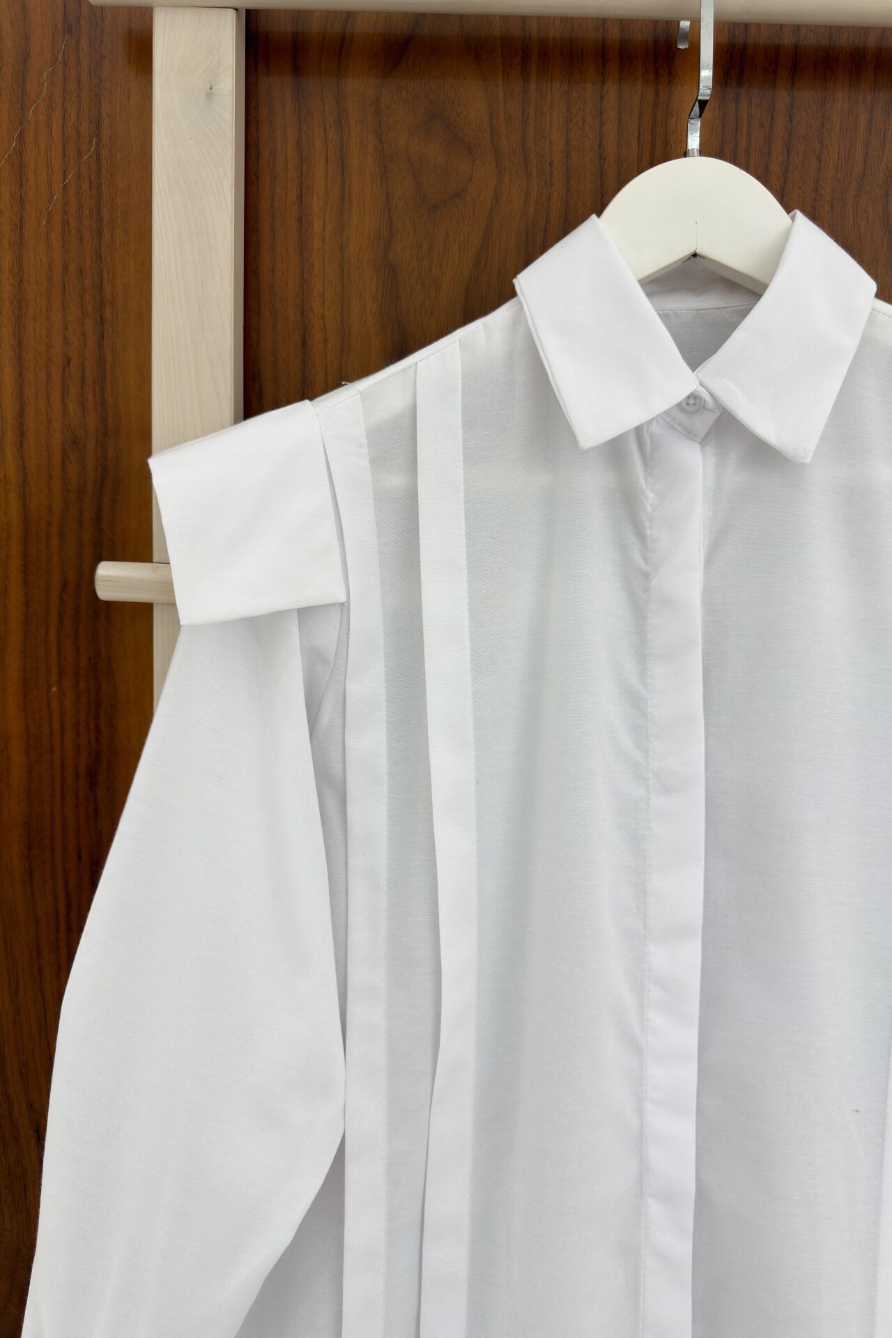 Beyaz Vatka Görünümlü Poplin Gömlek
