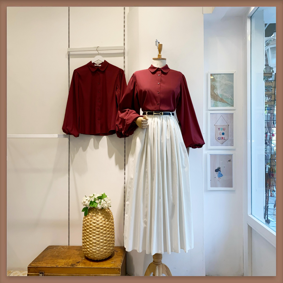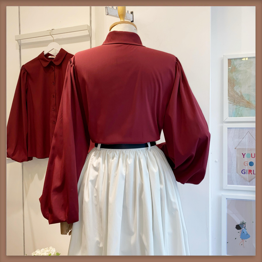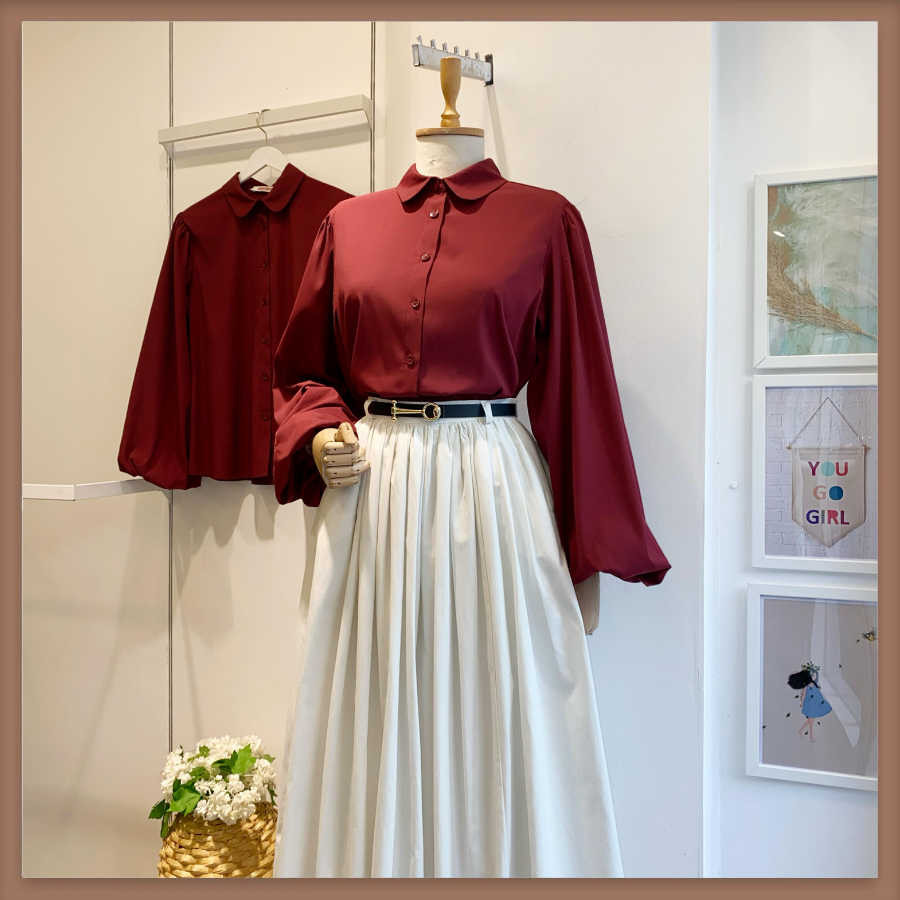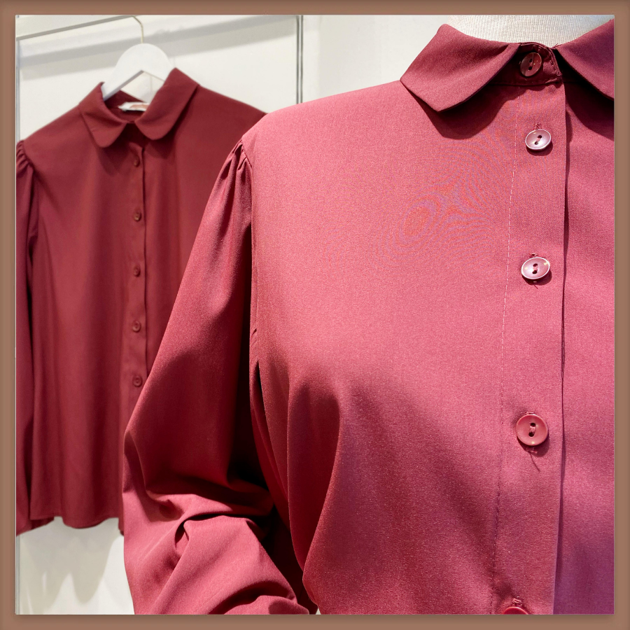 Bordo Bebe Yaka Balon Kol Poplin Gömlek