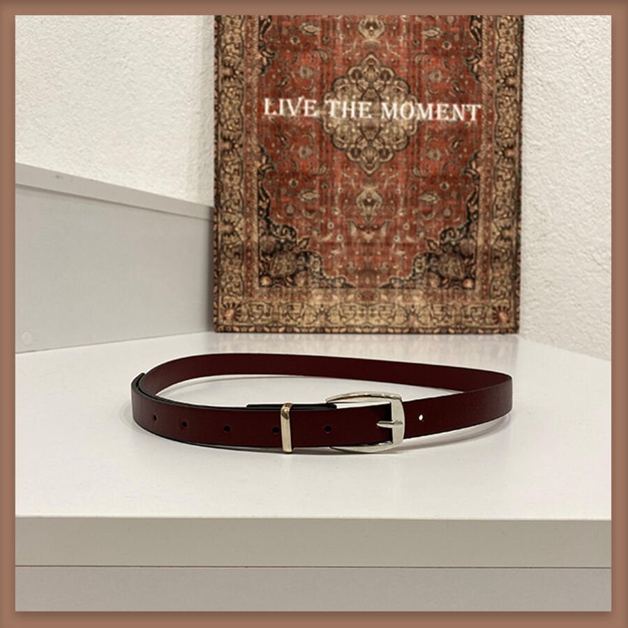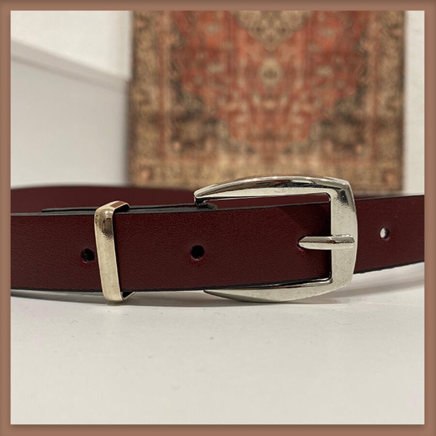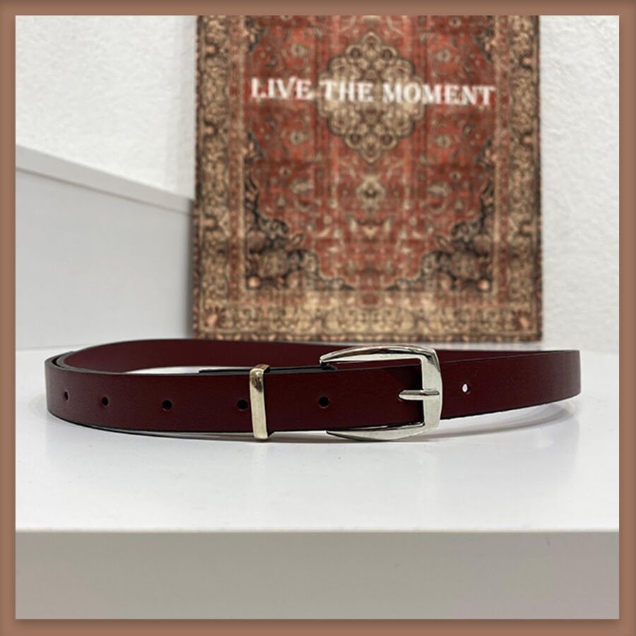 Bordo gümüş tokalı ince kemer