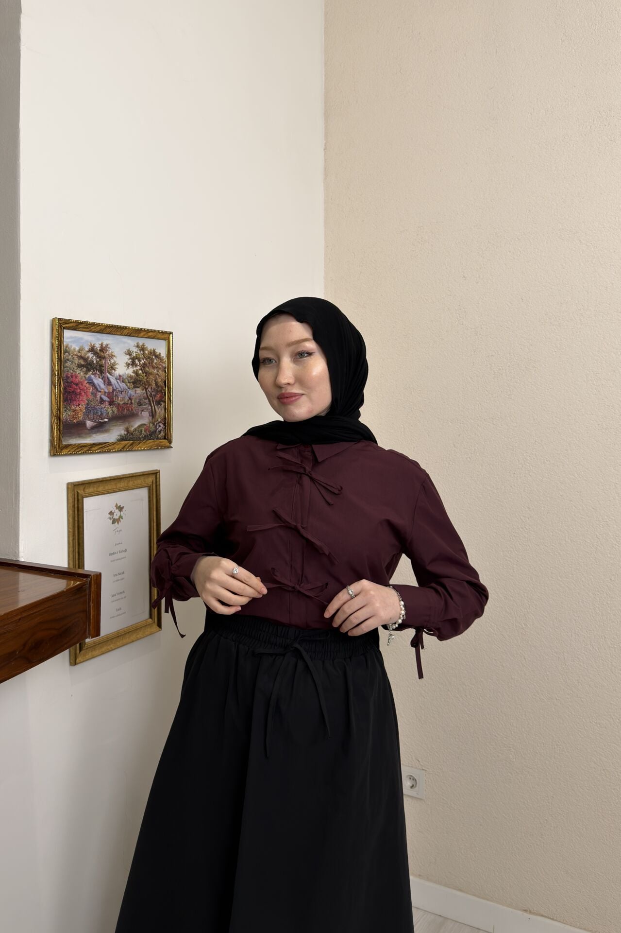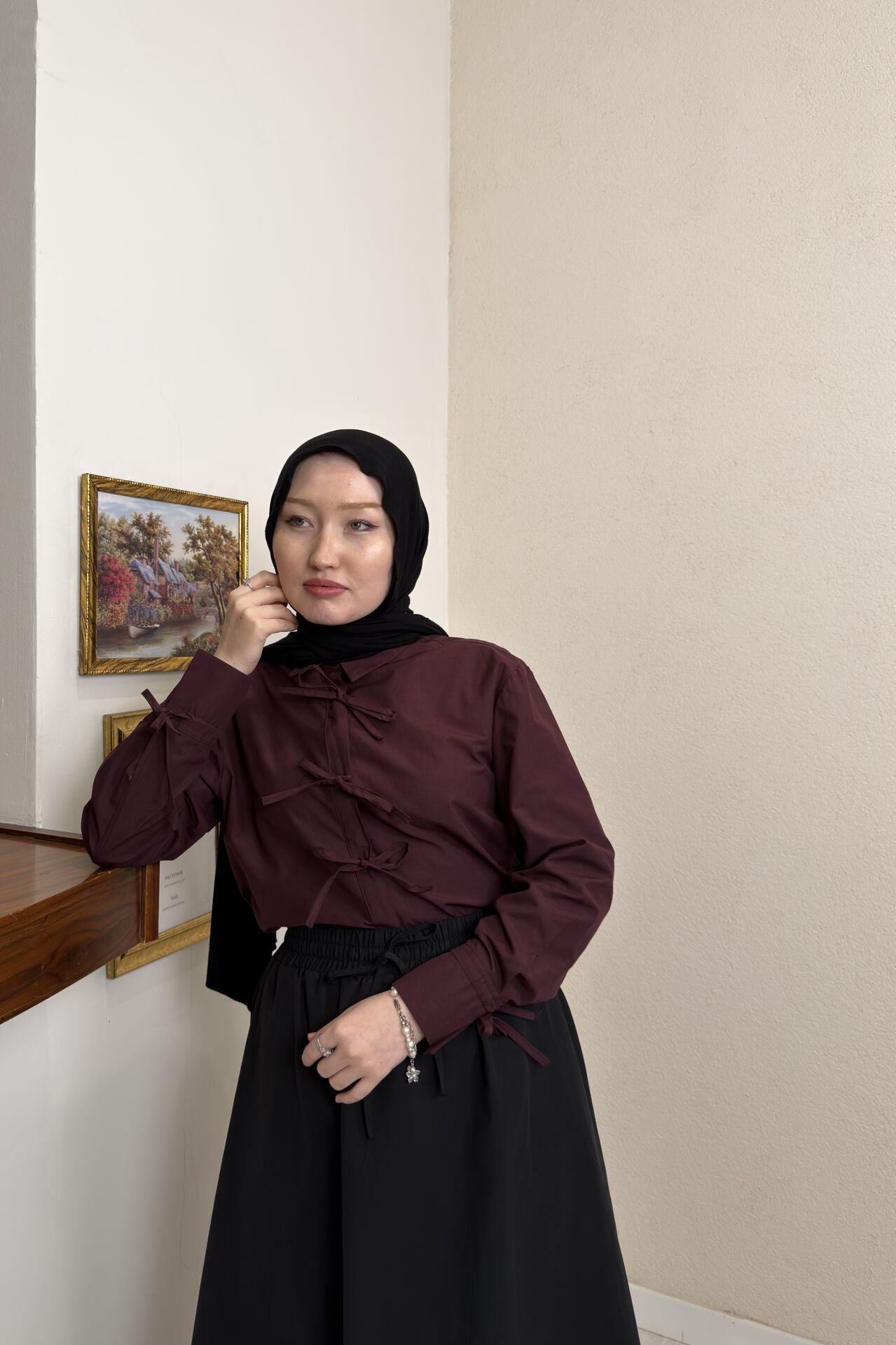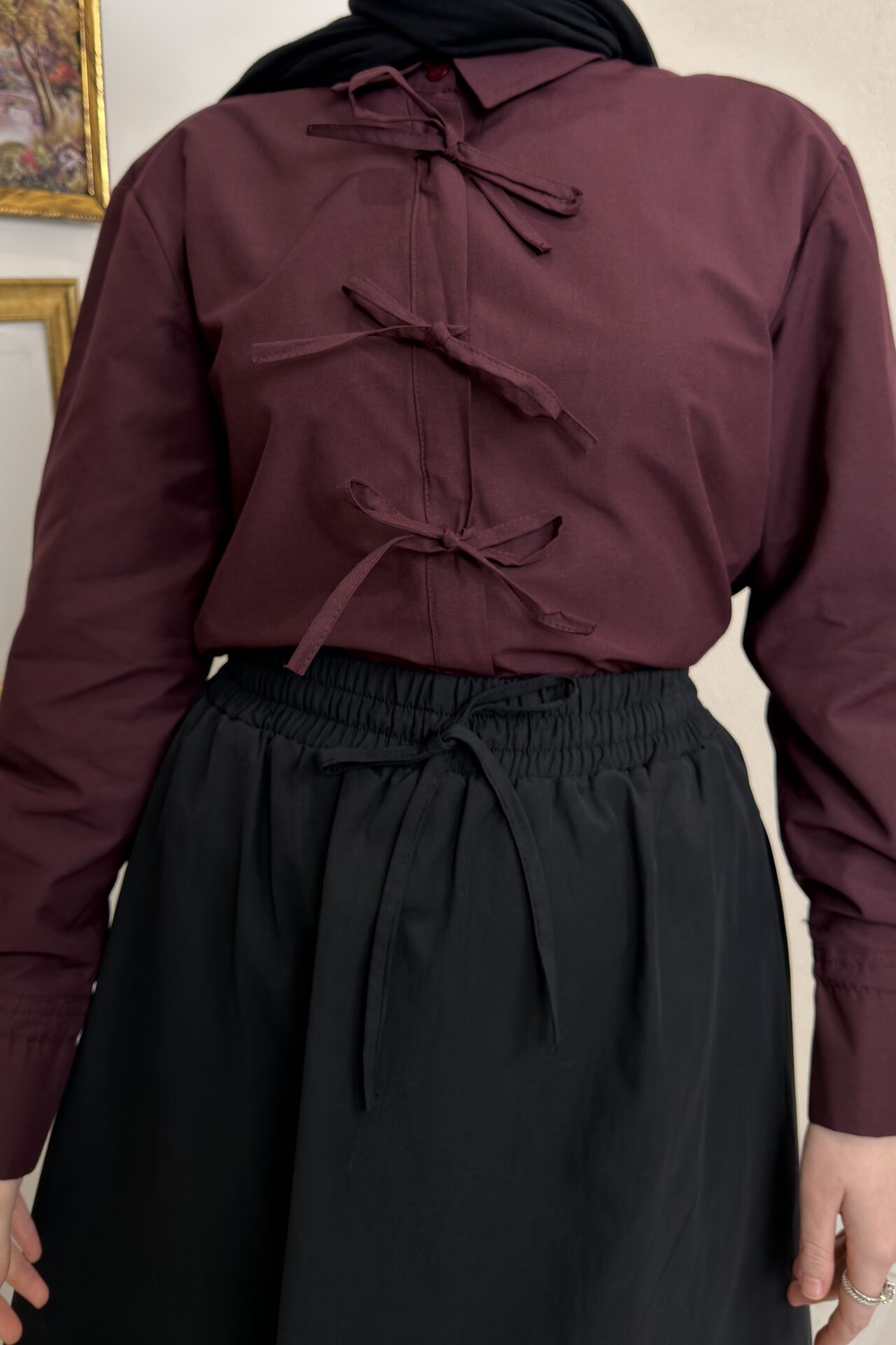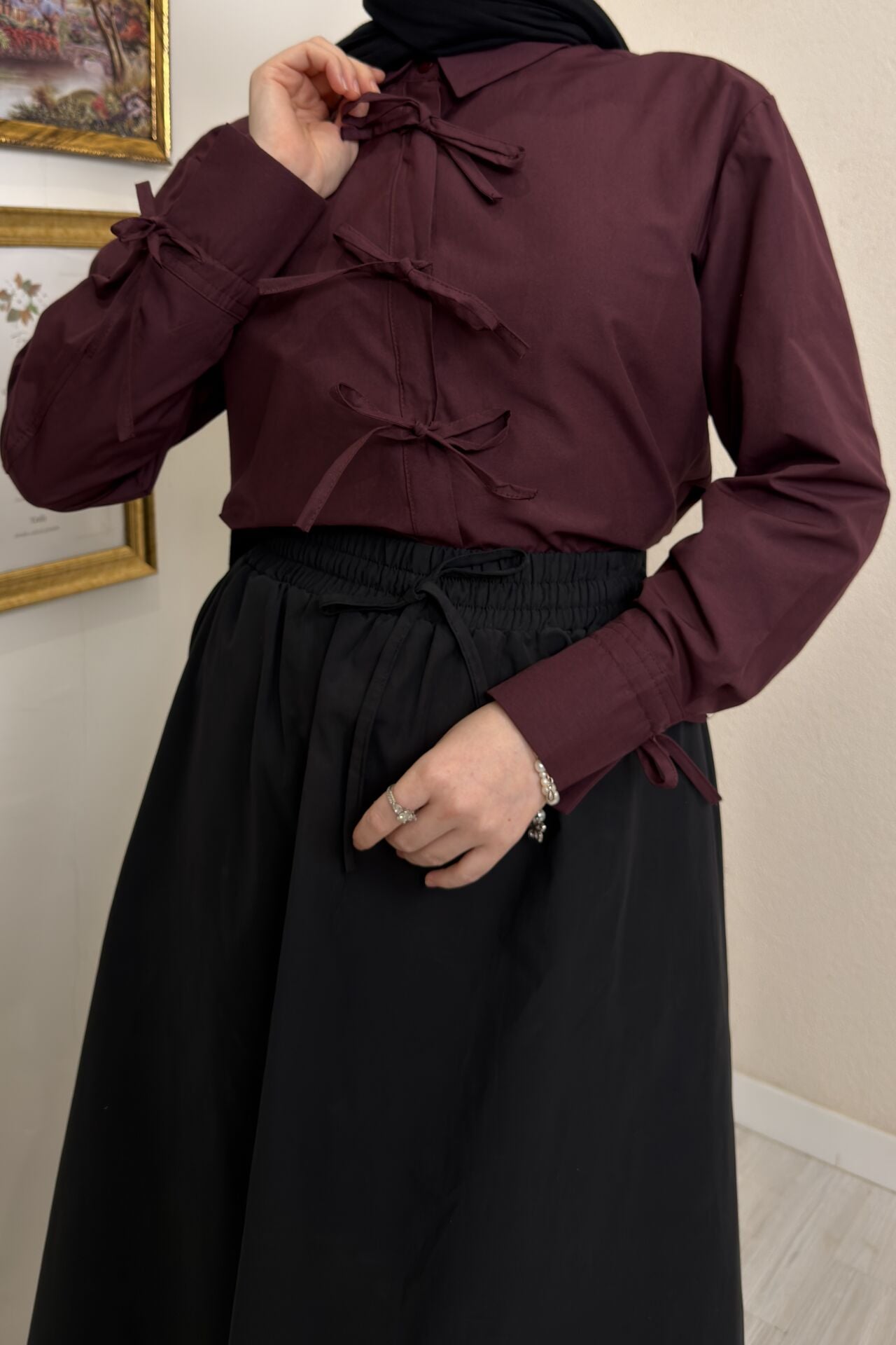Bordo Kurdele Detaylı Poplin Gömlek