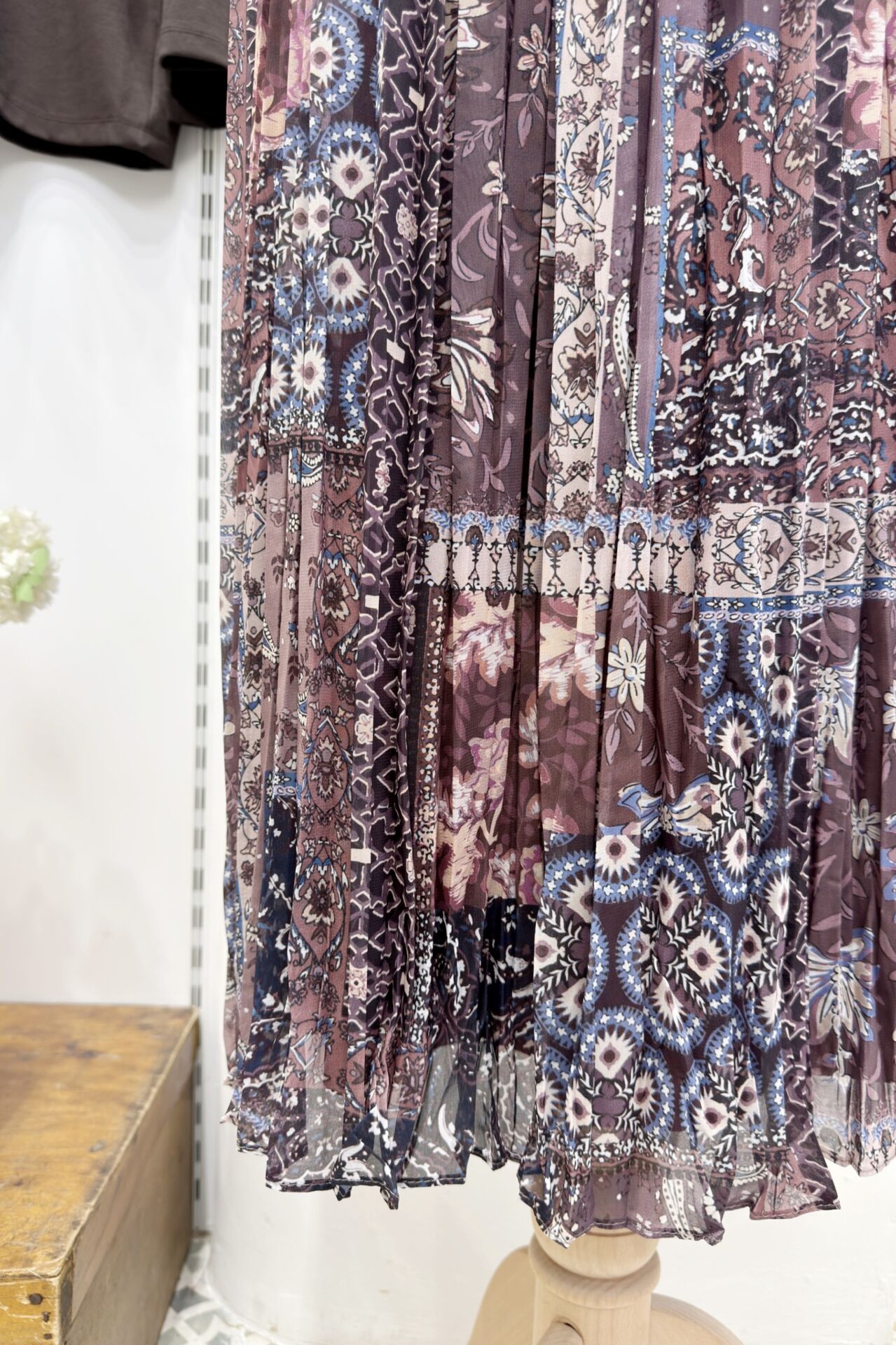 Bordo Patchwork Desenli Şifon Etek