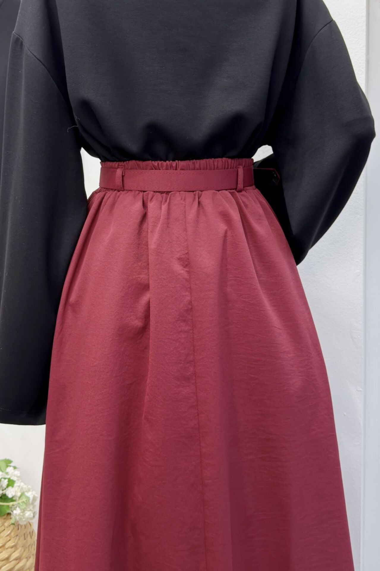 Bordo Pile Detaylı Senriss Etek