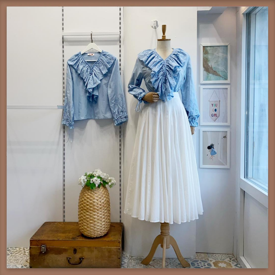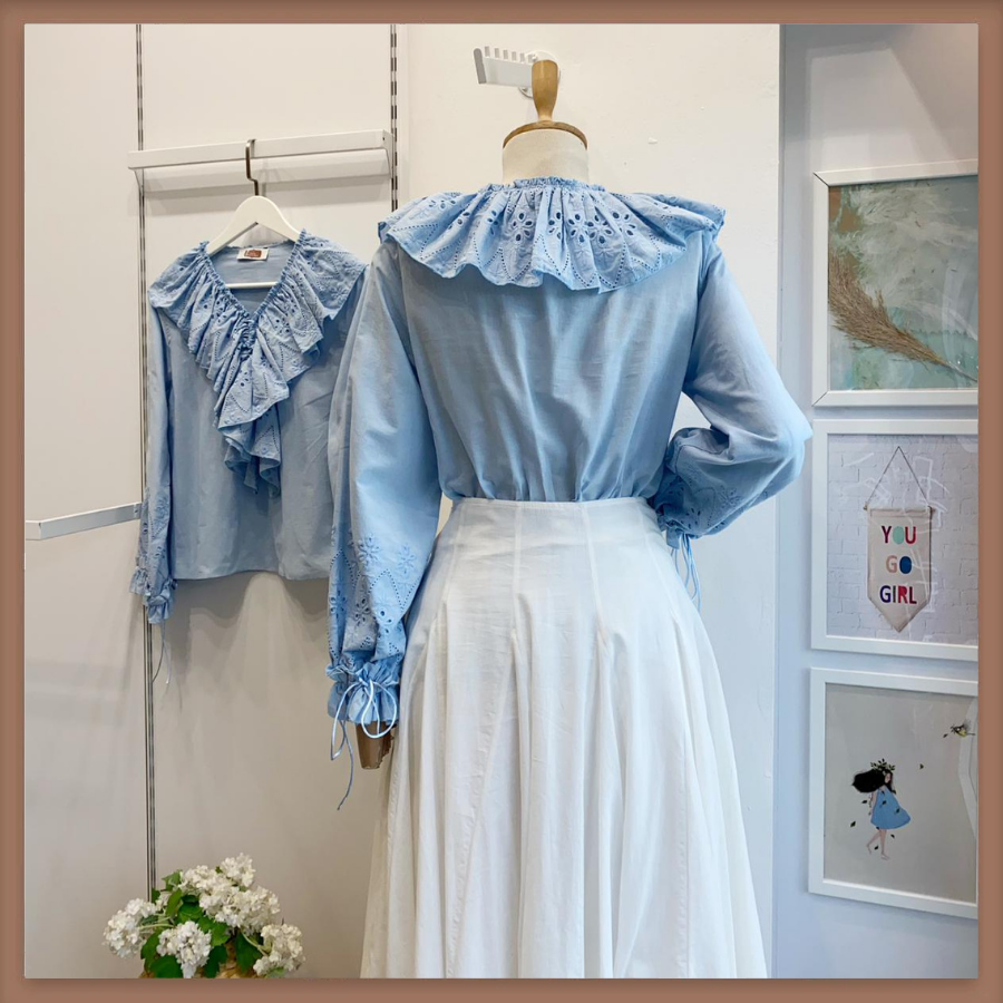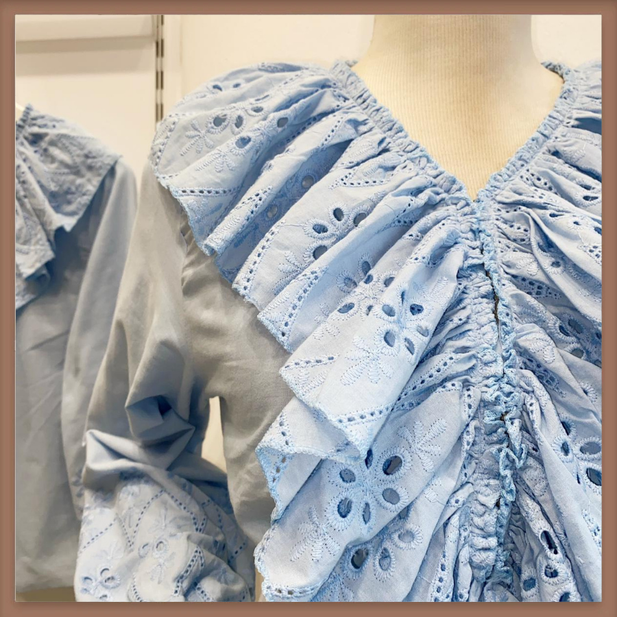 Brode Volanlı Bebe Mavisi Keten Gömlek