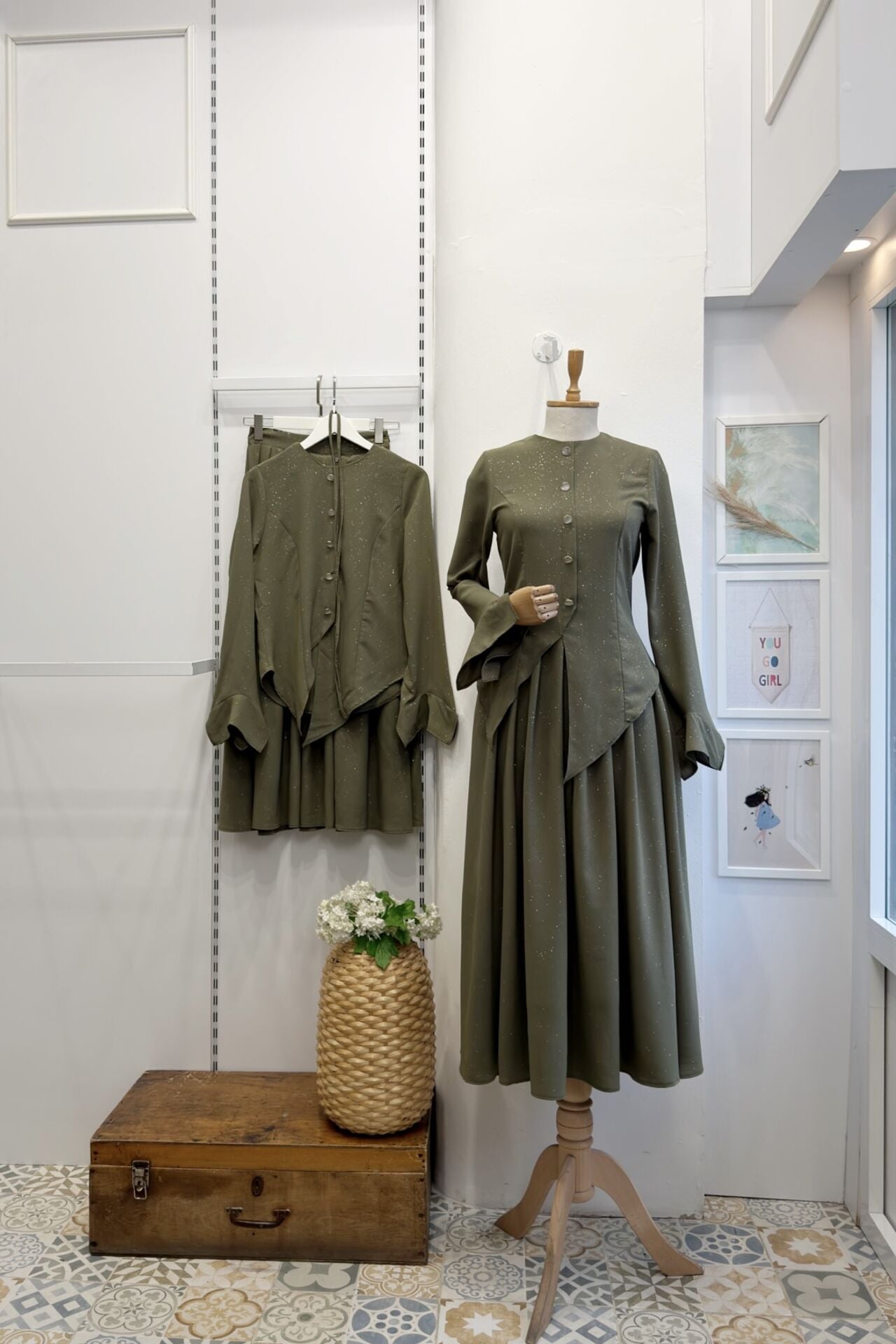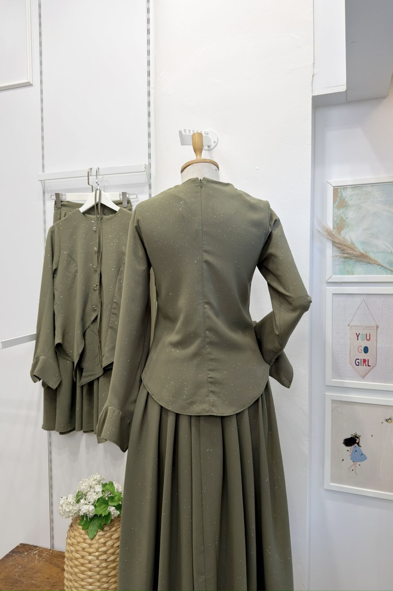 Çağla Yeşili Asimetrik Kesim Sim Detaylı Takım