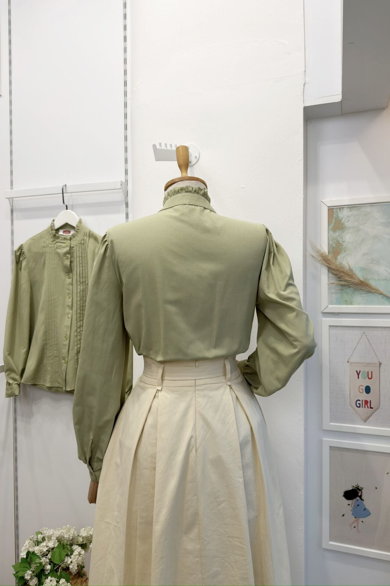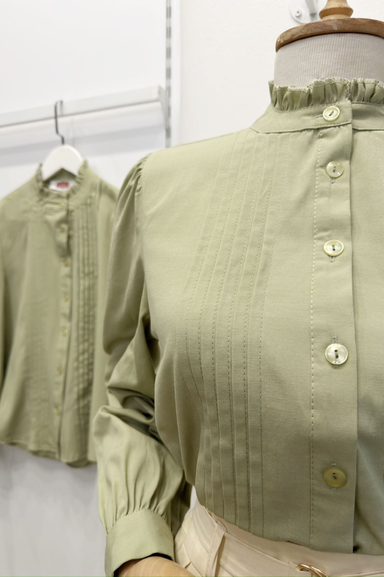 Çağla Yeşili Hakim Yaka Nervür Dikişli Poplin Gömlek