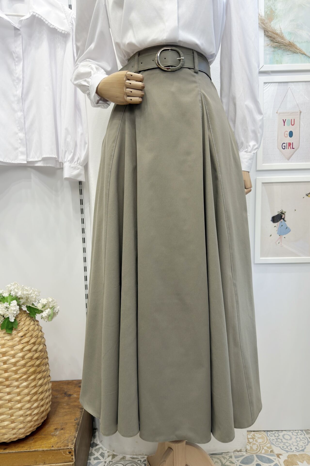 Çağla Yeşili Kemerli Verte Etek