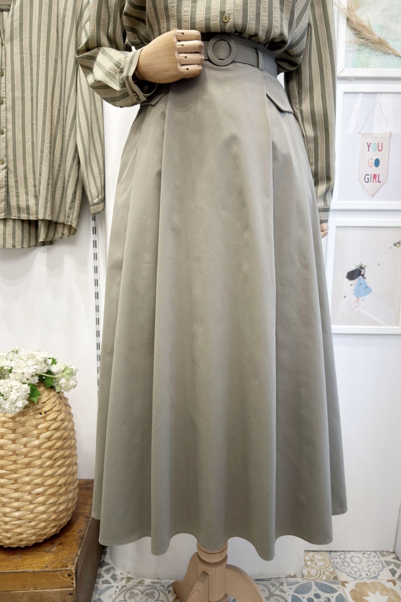 Çağla Yeşili Pile Detaylı Senriss Etek