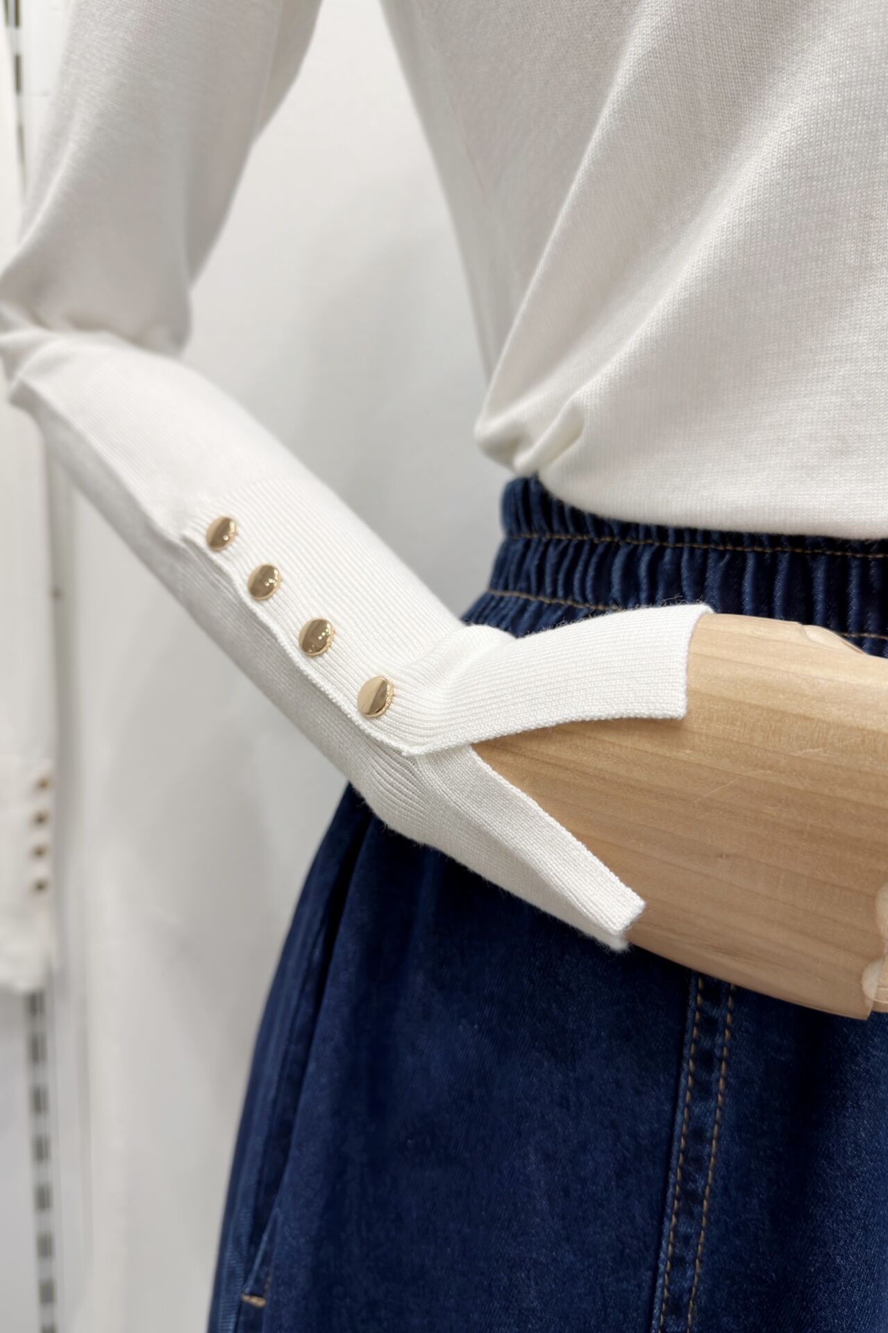 Ekru Bisiklet Yaka Kol Ortası Droplu Triko Bluz