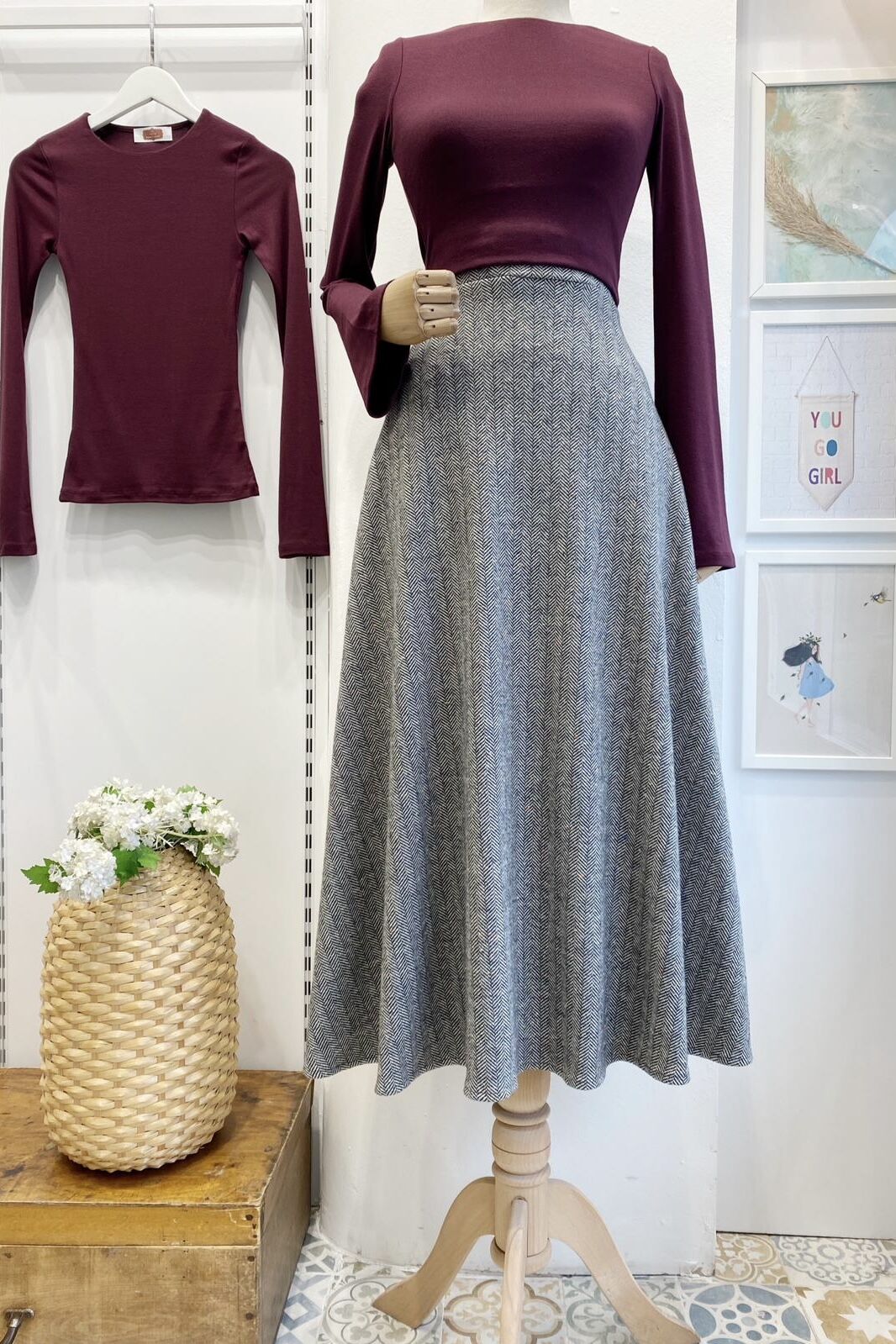 Gri Kazayağı Desenli Ether Etek N4P1Z