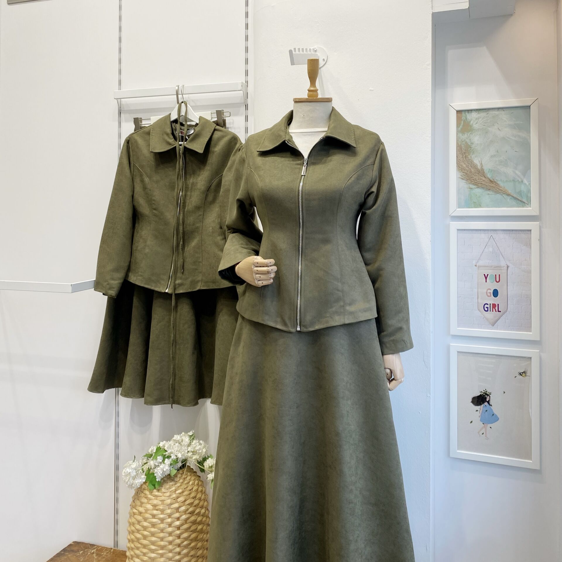 Haki Yeşili Fermuar Detaylı Nubuk Takım