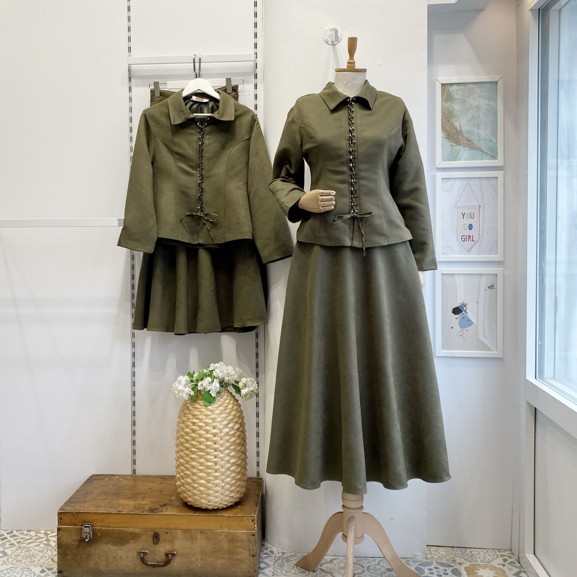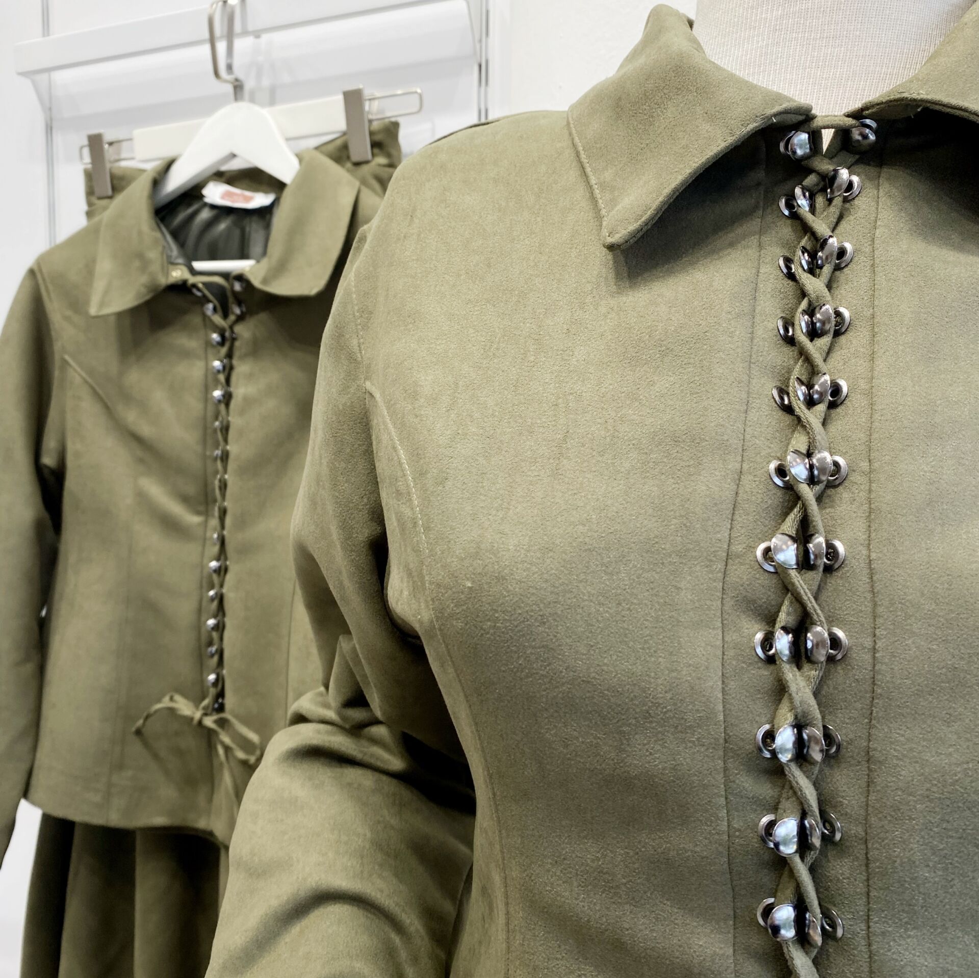 Haki Yeşili Bağcık Detaylı Süet Takım