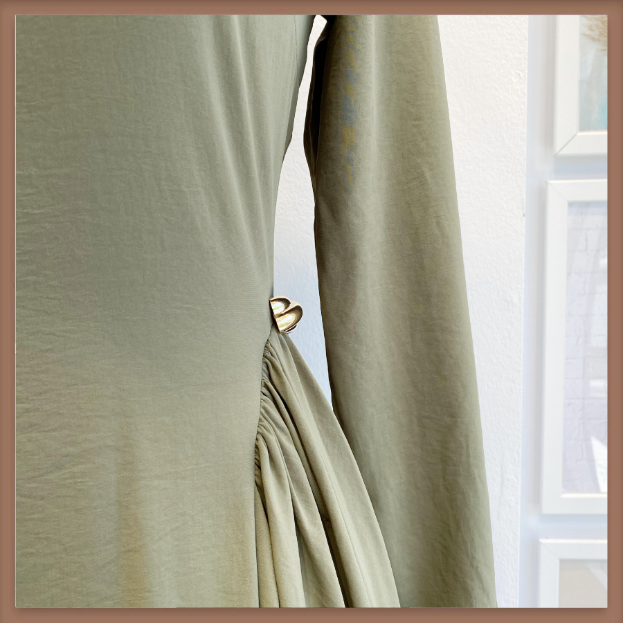 Haki Yeşili Bel Detaylı Hira Elbise