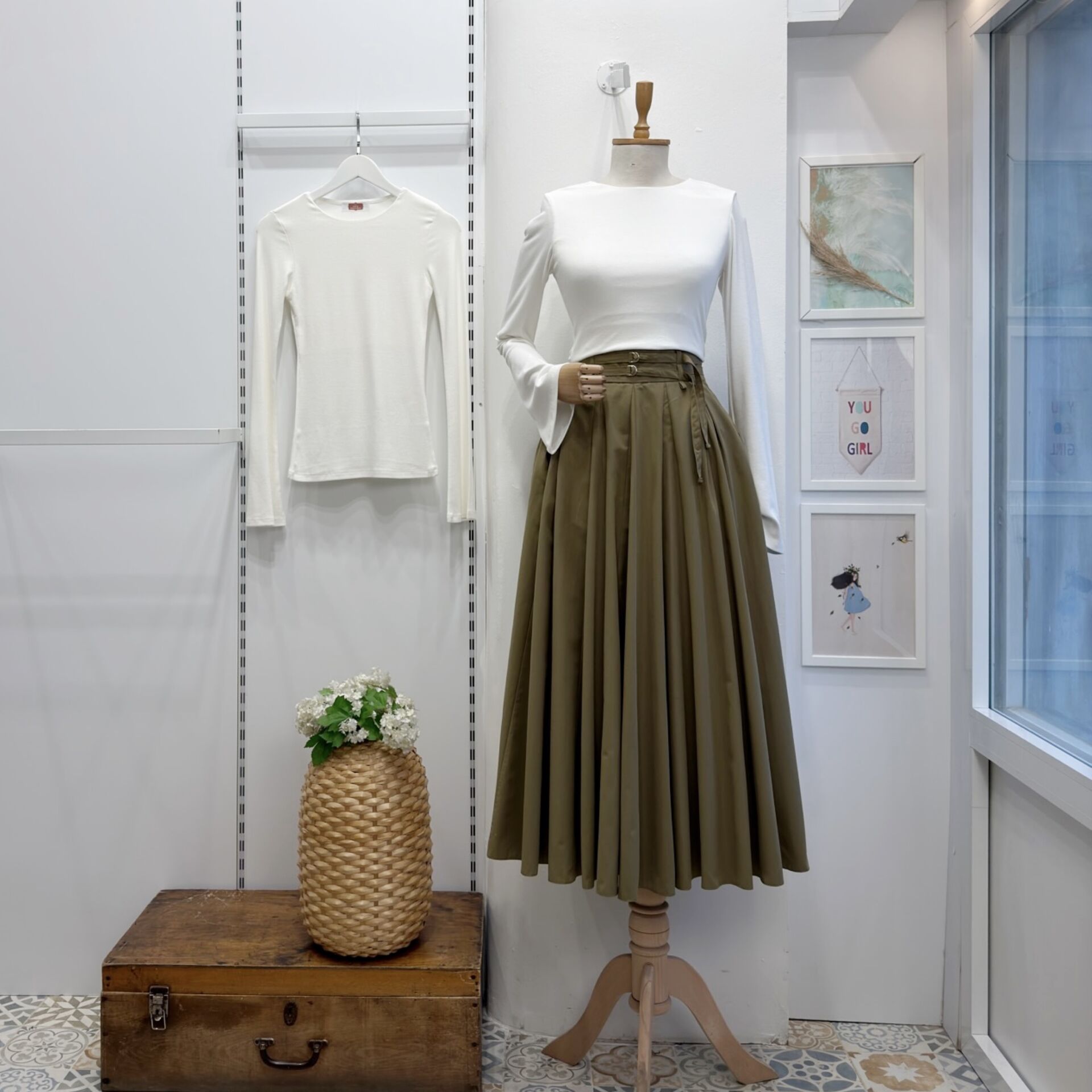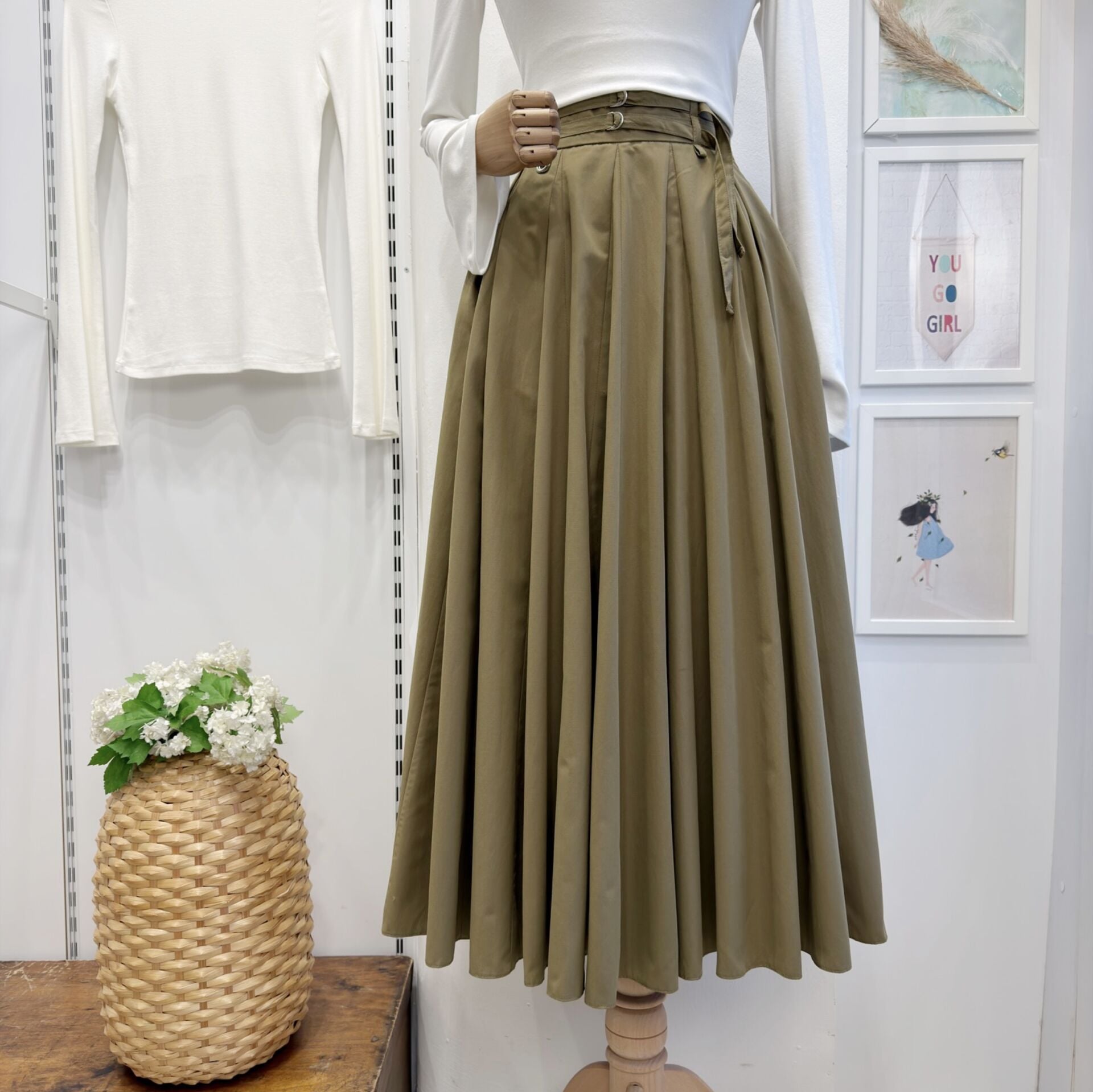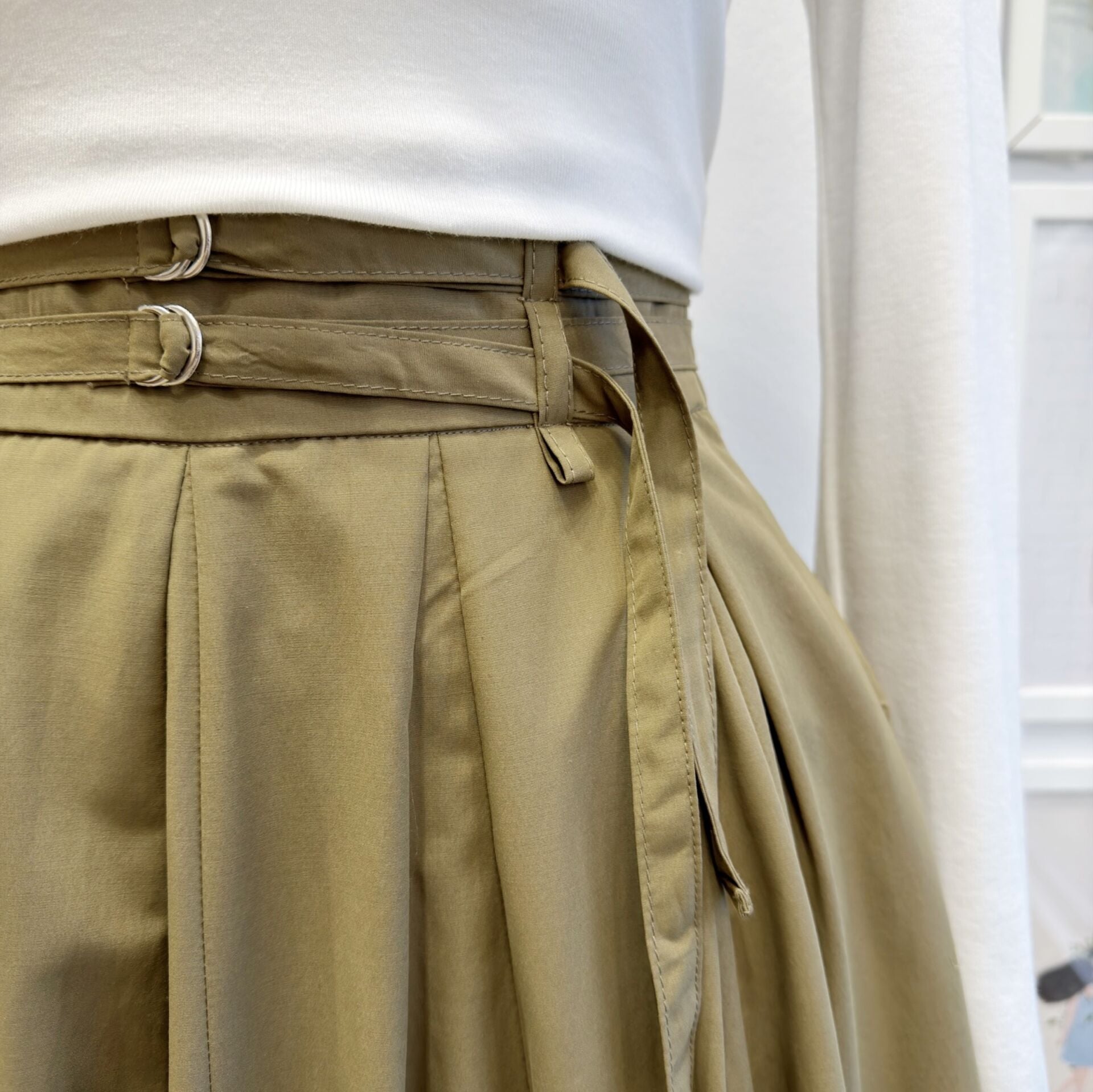 Ihlamur Yeşili İki Kemerli Fiorite Poplin Etek