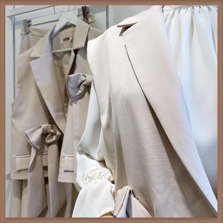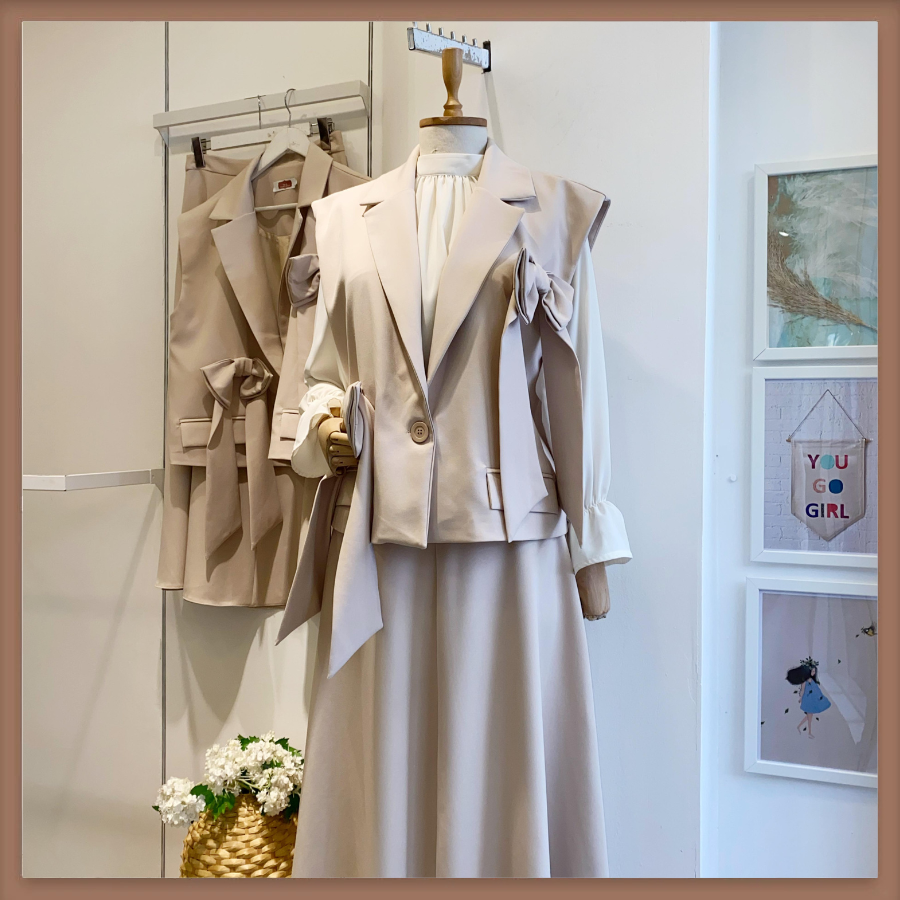 Krem Çift Kurdele Detaylı Takım