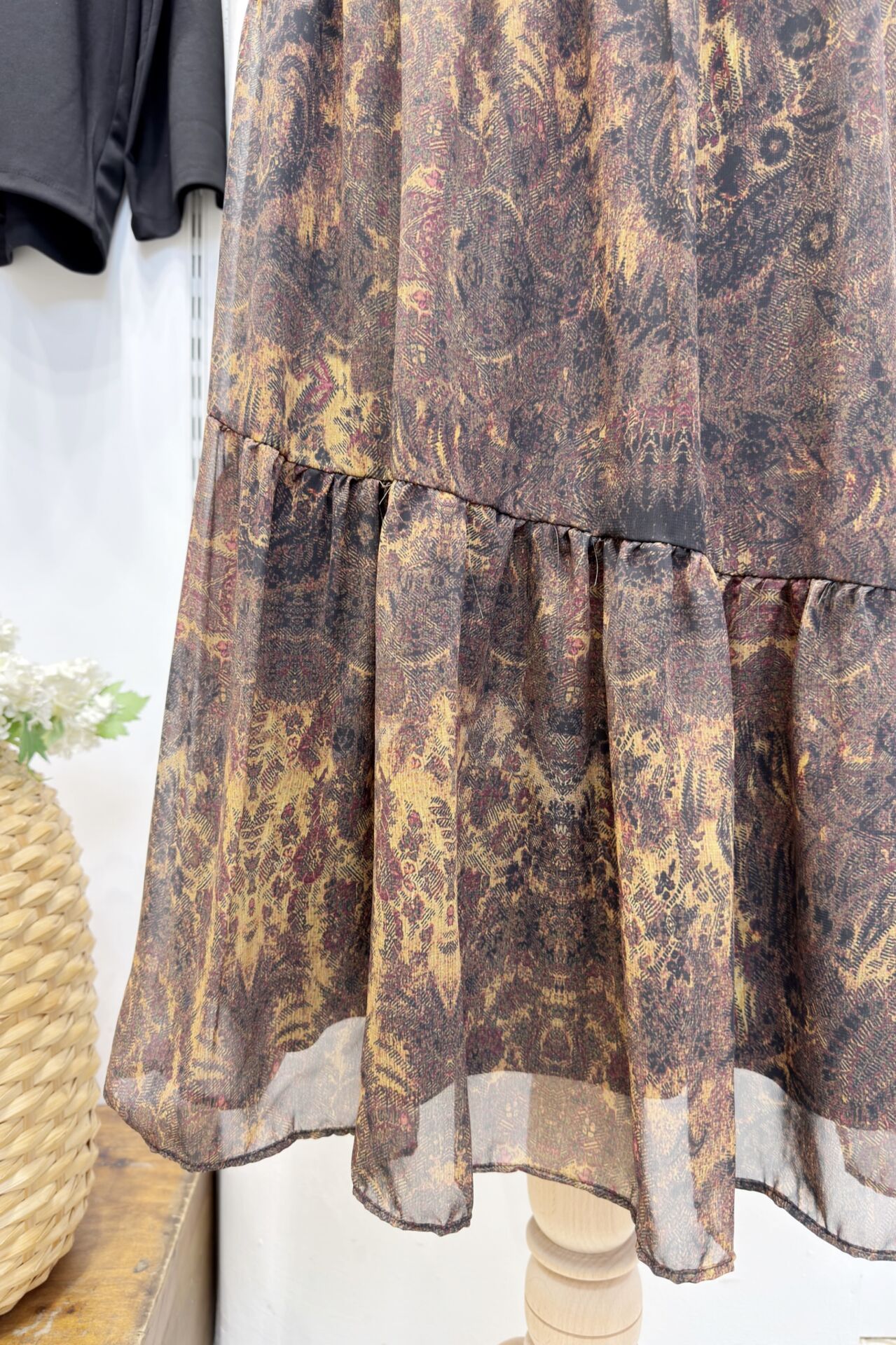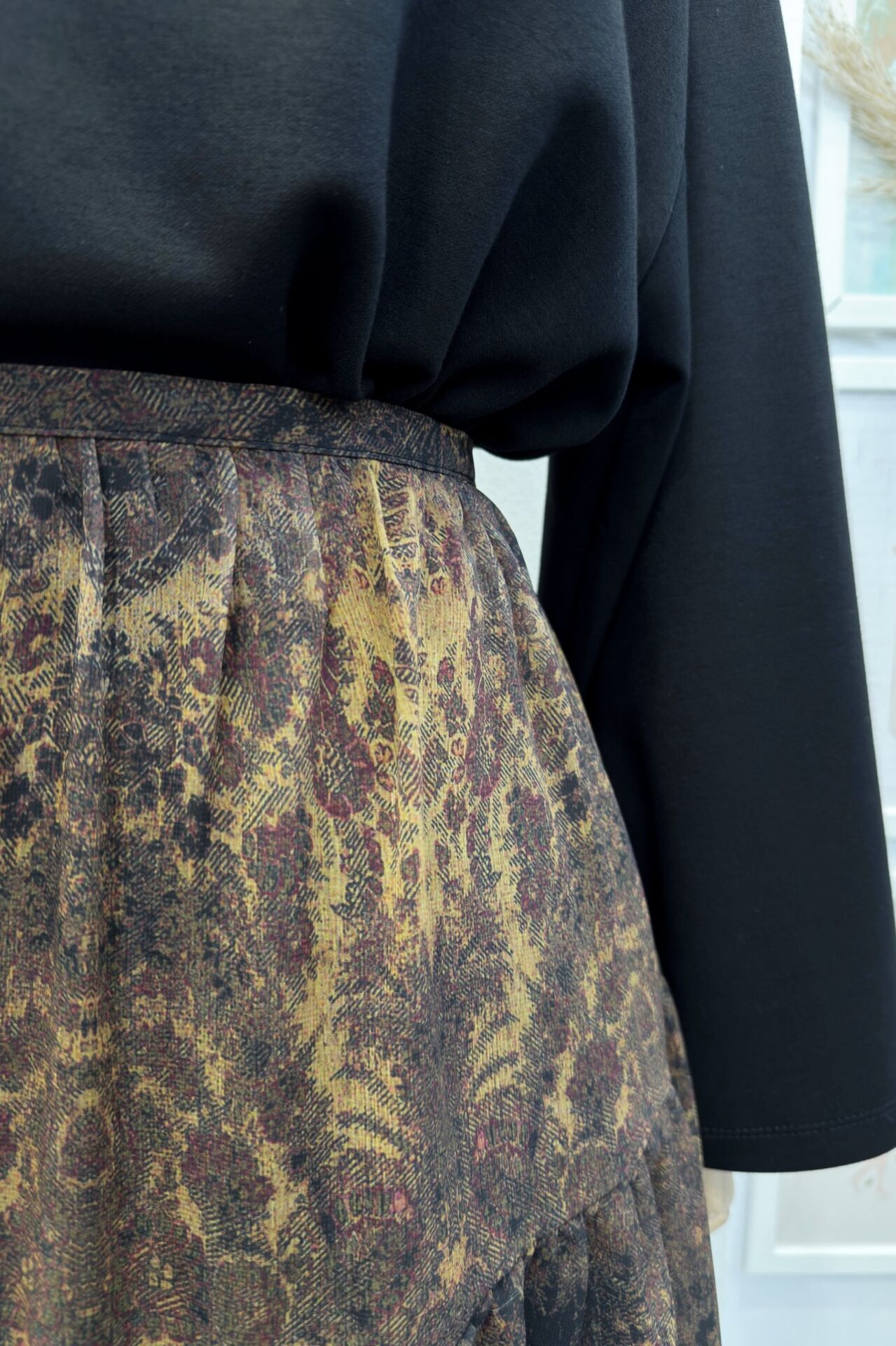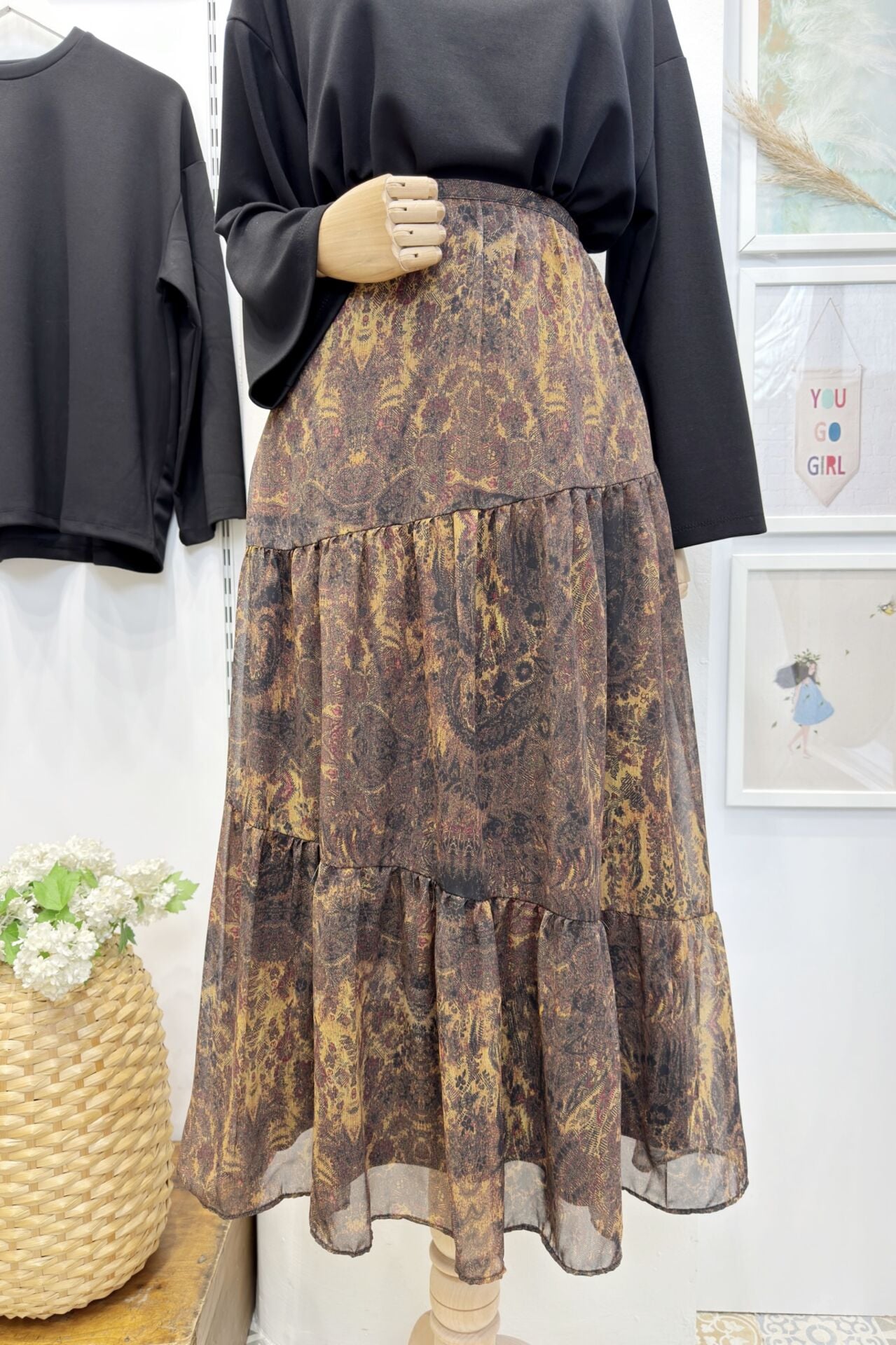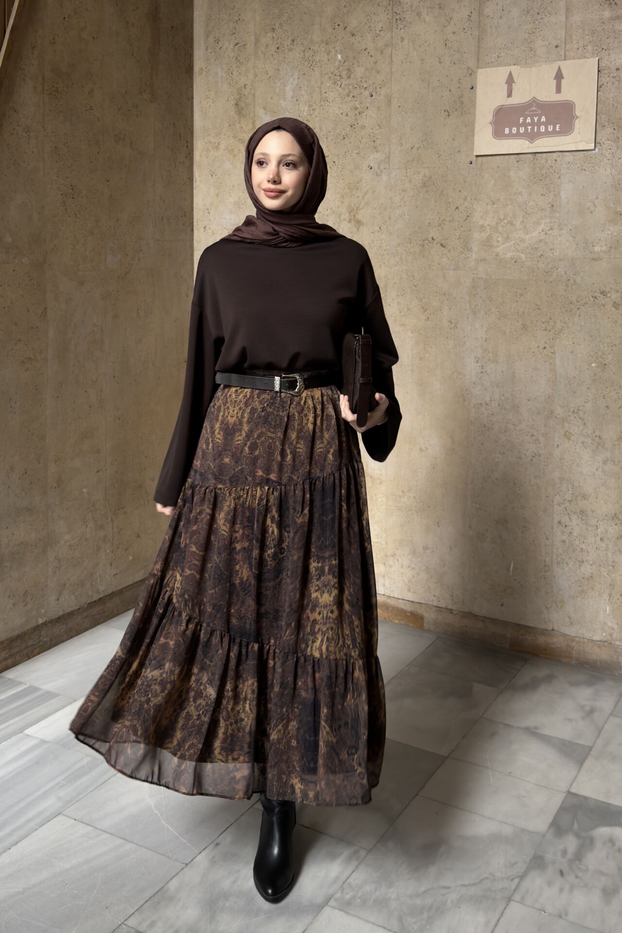 Kahverengi Desenli Orelia Şifon Etek 6BP