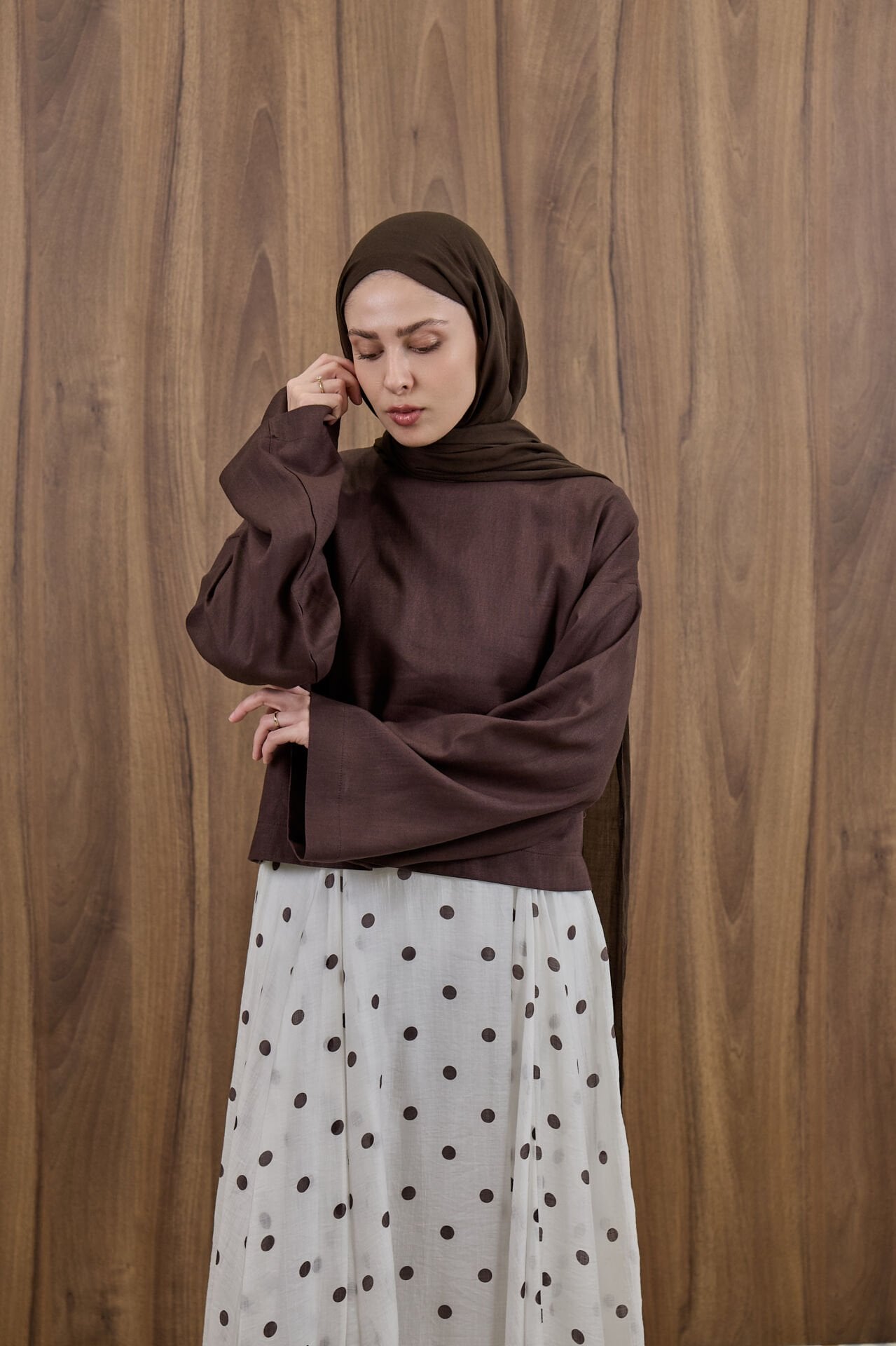 Kahverengi Forme Keten Bluz