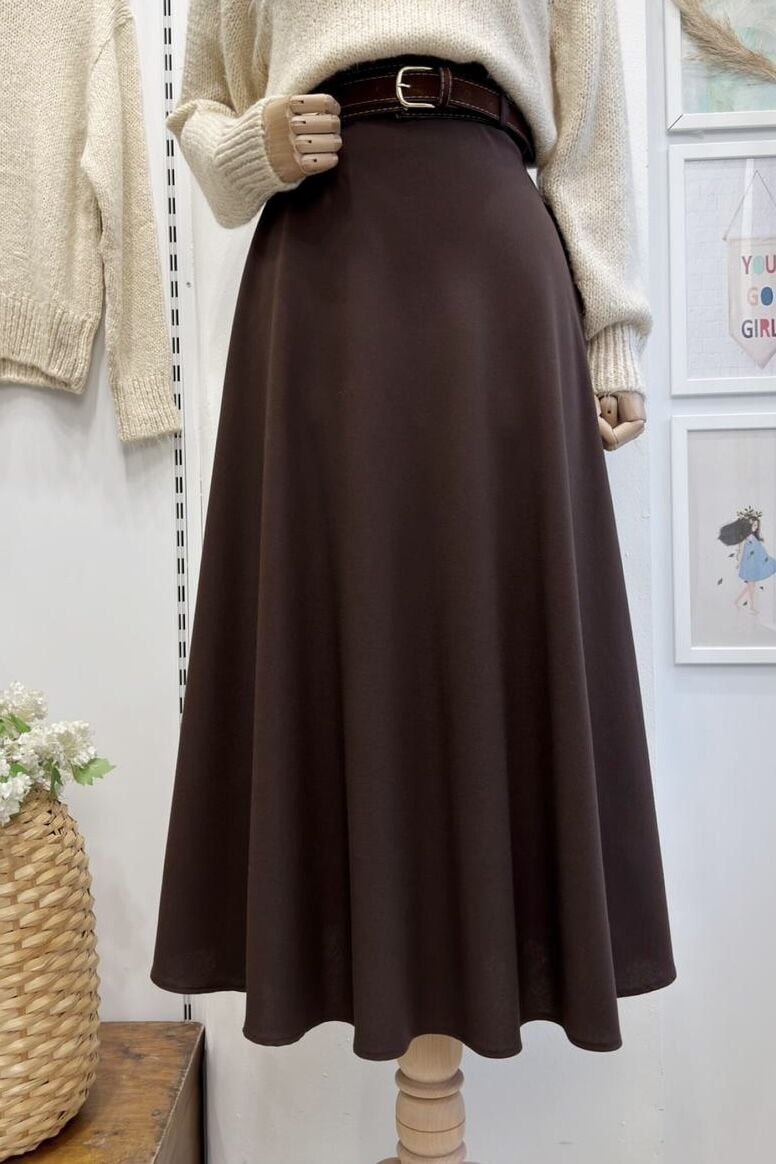 Kahverengi Kemer Detaylı Maestro Crep Etek